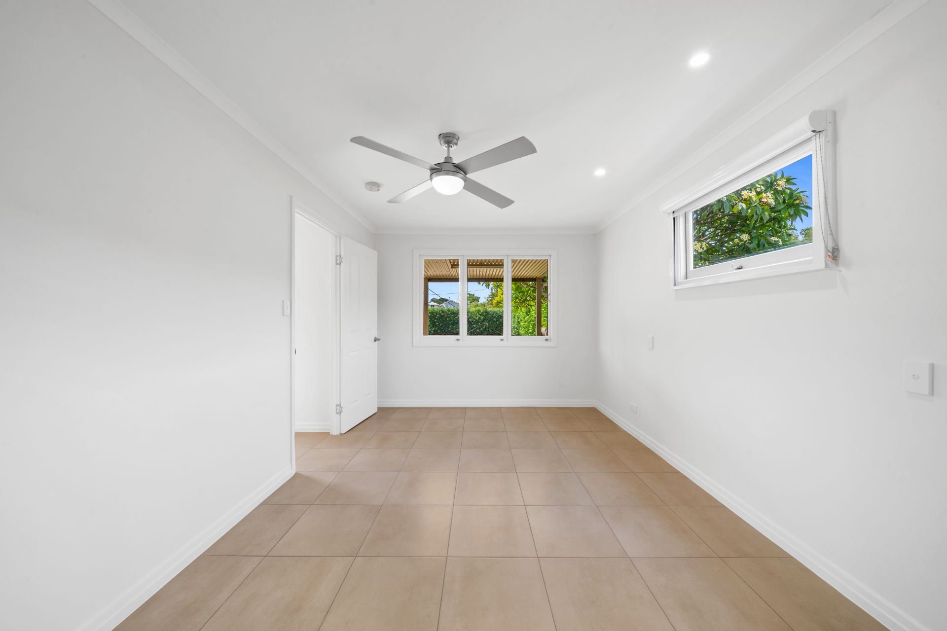 > Bedroom 4 located on the ground level offers tile flooring, ceiling fan with light, down lights, casement windows and venetian blinds.