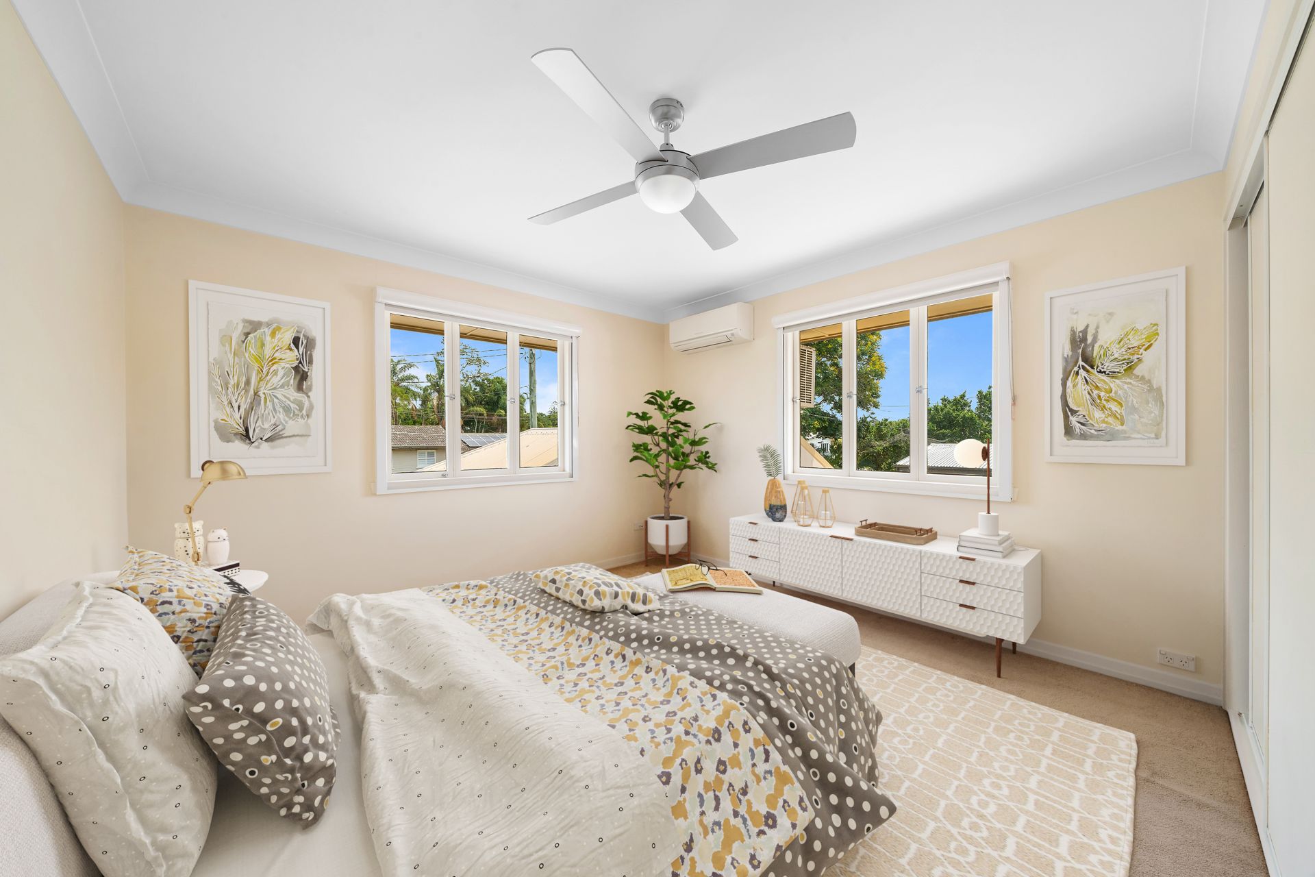 polished timber flooring, Mitsubishi split-system air-conditioning, ceiling fan with light and casement windows with venetian blinds.