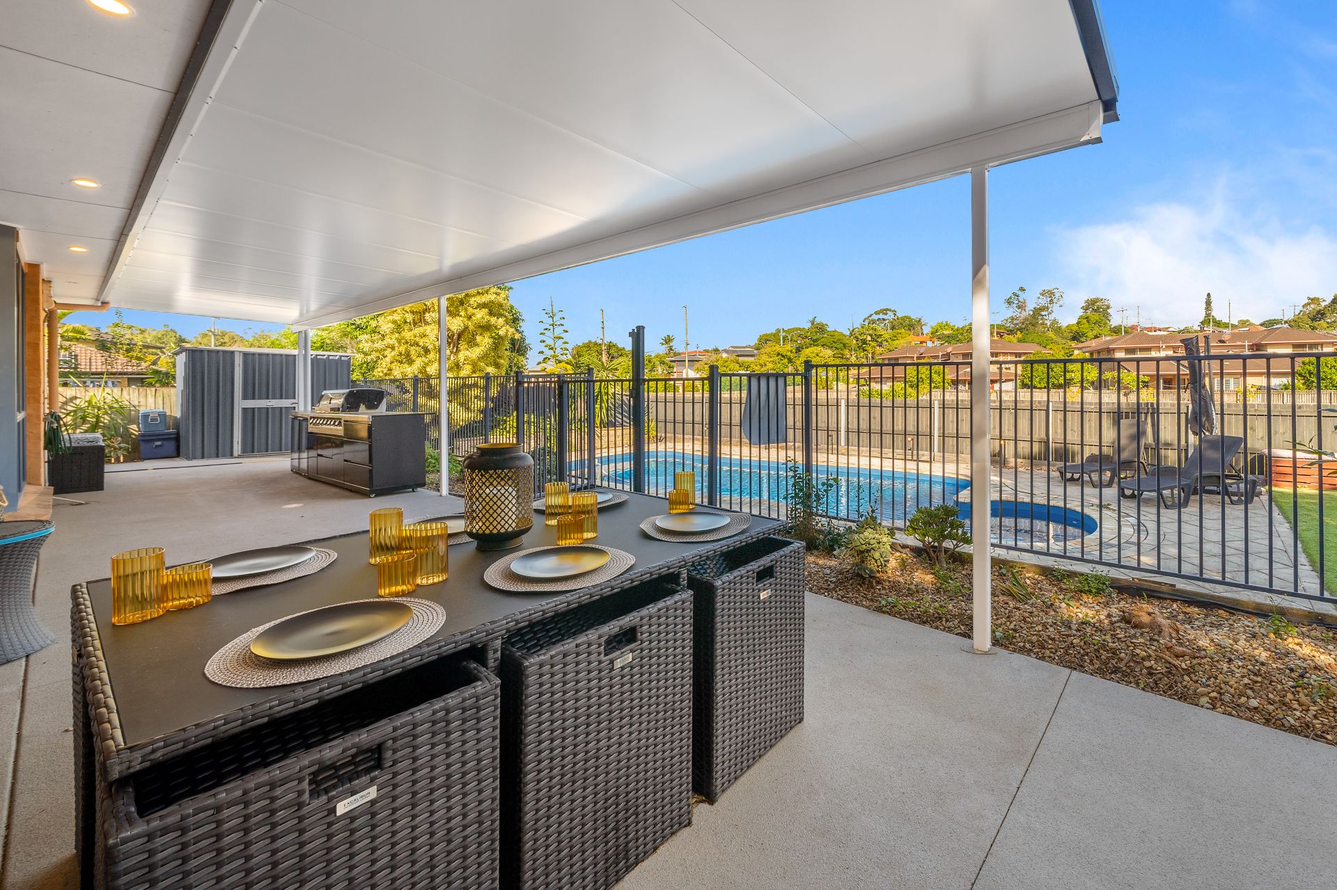 - Outdoor entertaining will be a breeze thanks to the large, covered patio out the back teamed with the with the glistening inground pool encapsulating everything there is to love about our Queensland lifestyle.