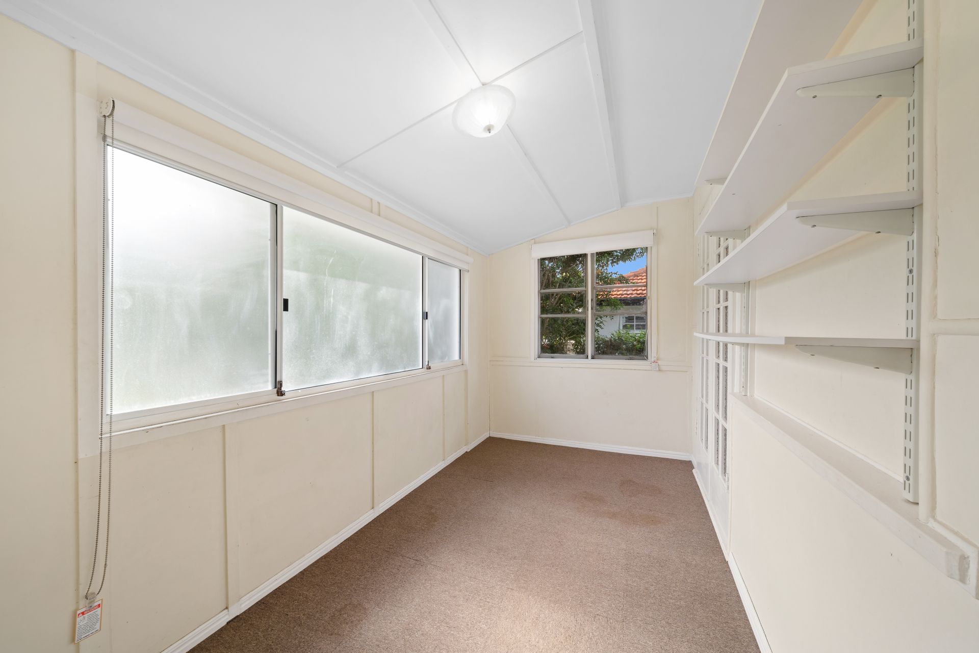 > The study offers carpet floors, shelving, oyster lighting, casement and sliding windows, fly screens and roller blinds.