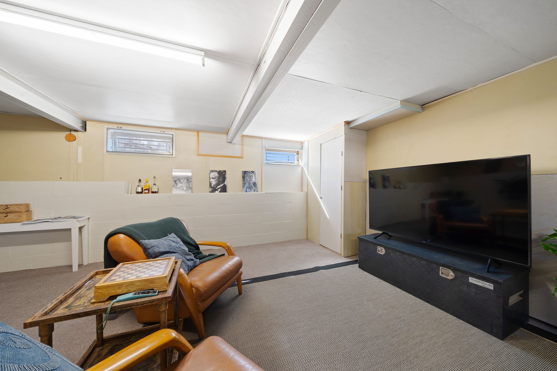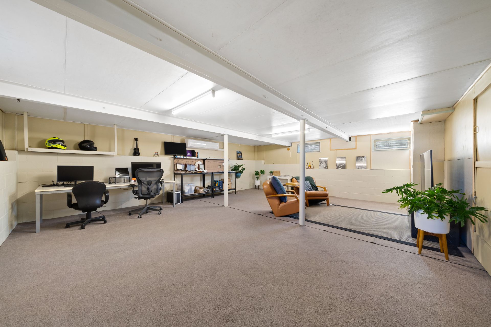 >Multipurpose room located on the lower level, whilst just shy of legal height, offers plenty of potential. Featuring casement windows with security bars, Gree split-system air-conditioner, and florescent lighting.
