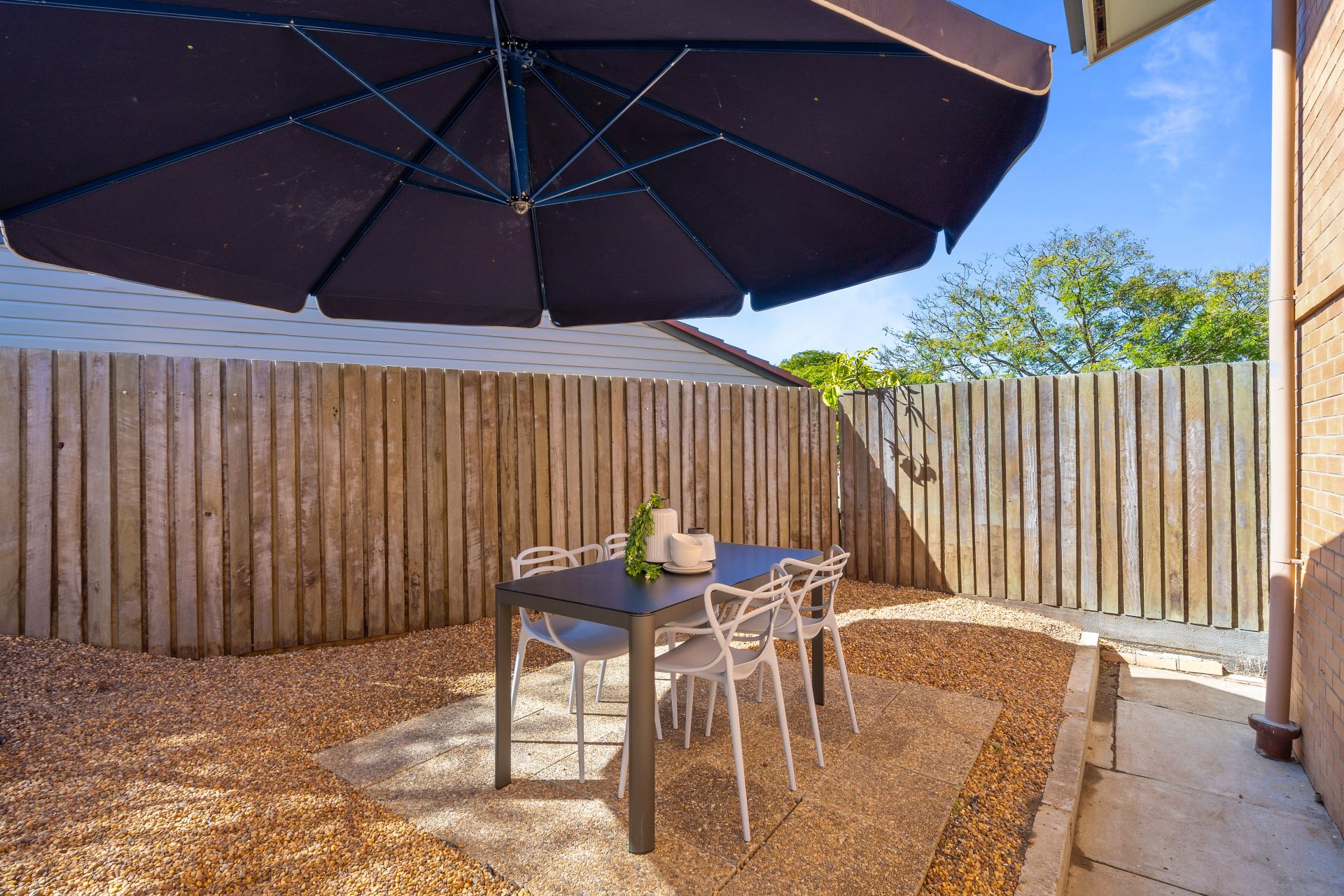-The courtyard is fully fenced offering access from the front of the house and laundry. It features pavers, wind-up shade umbrella, landscaped garden and clothes line.