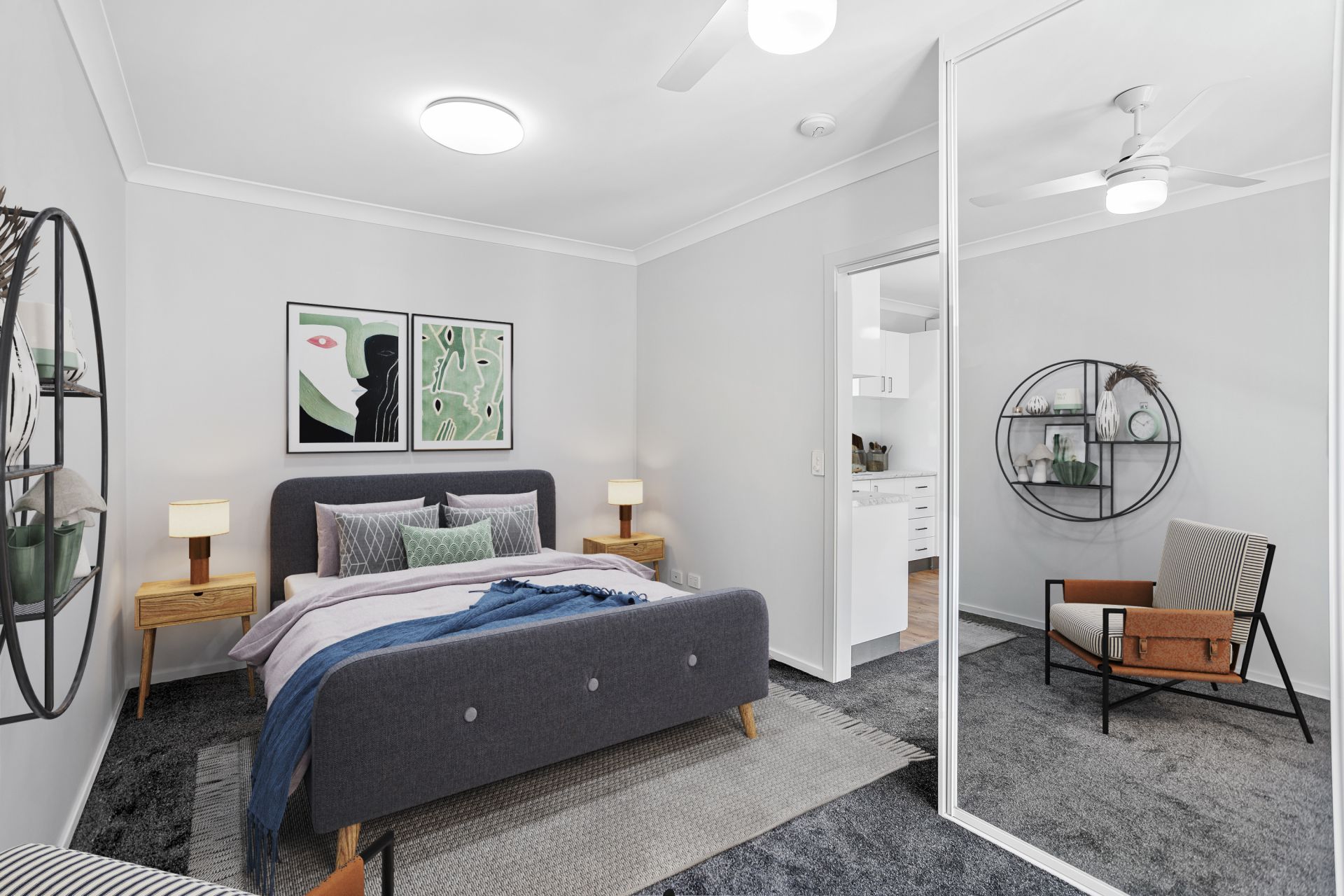 - 2 generous bedrooms each with carpeted flooring, ceiling fan, screens, block-out roll-down blind and built-in wardrobe
