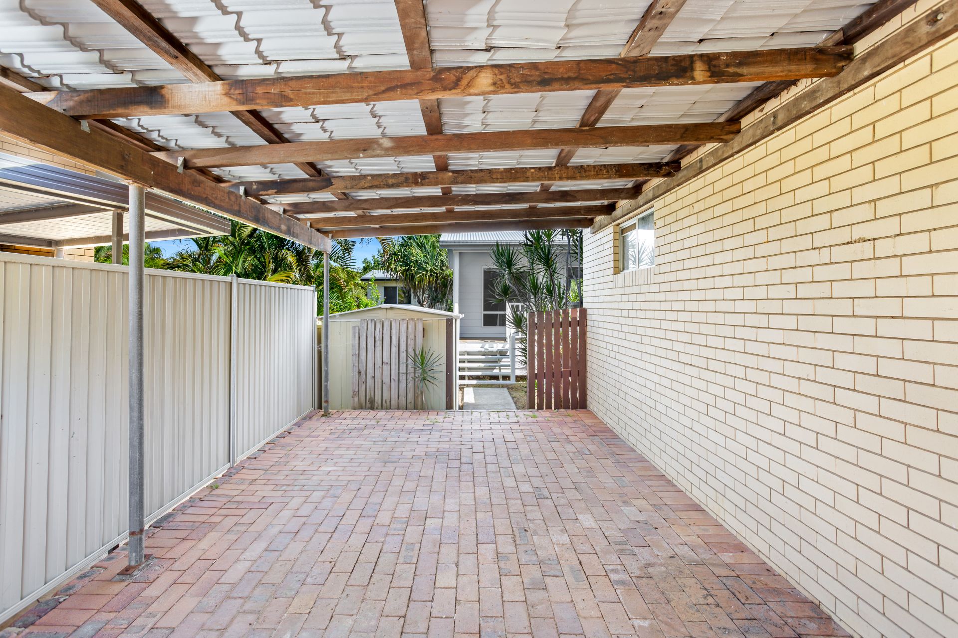 > Single carport with colour-bond gates