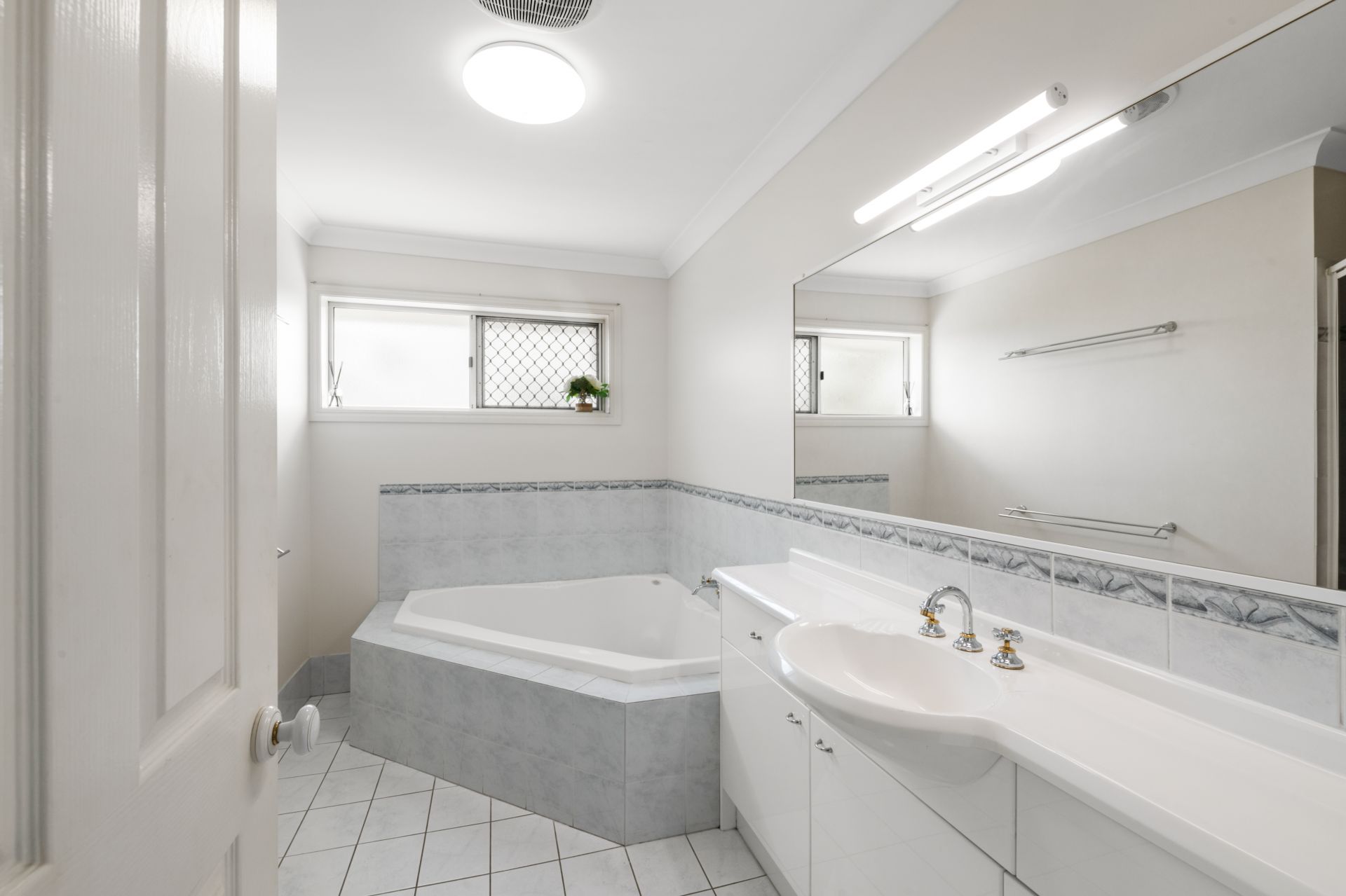 - Bedroom one is the spacious, light-filled Master bedroom featuring timber flooring, large ensuite, double glazed windows, split system air-conditioning, ceiling fan, walk-in-robe + built-in-robes and access to the rear balcony.
