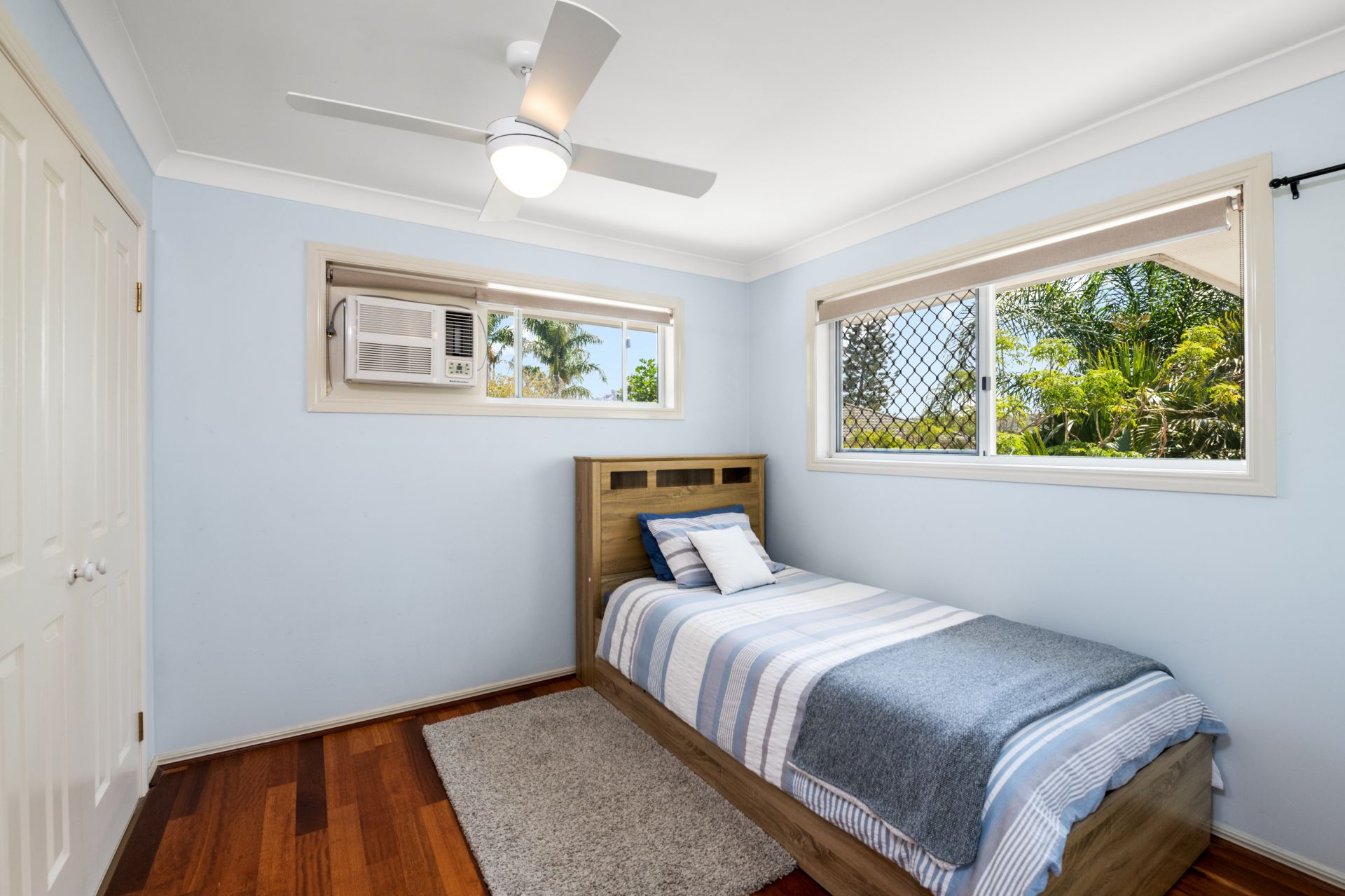 - Bedroom four features timber flooring, air-conditioning, ceiling fan and built-in-robe.