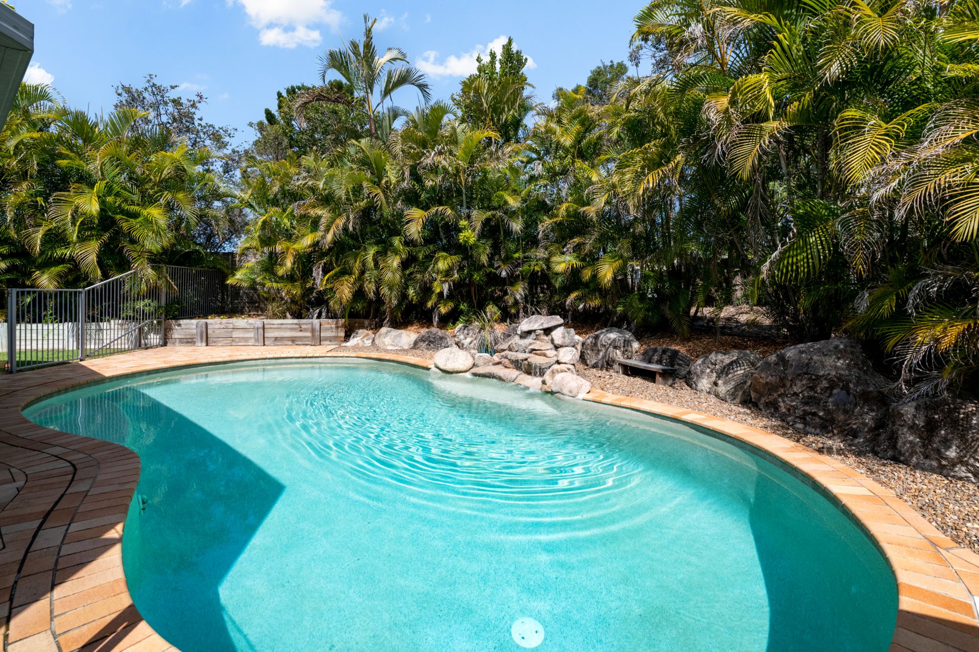 - Resort style in-ground swimming pool with waterfall & spa step