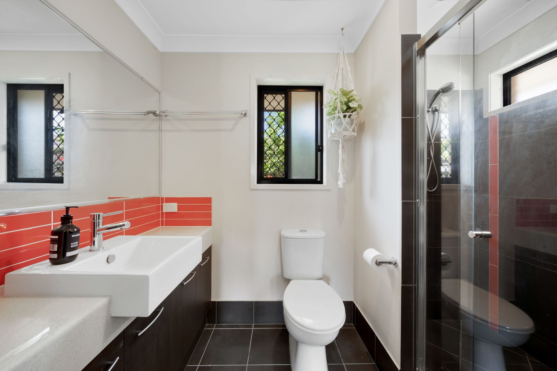 > The ensuite to the master bedroom boasts a large shower with detachable