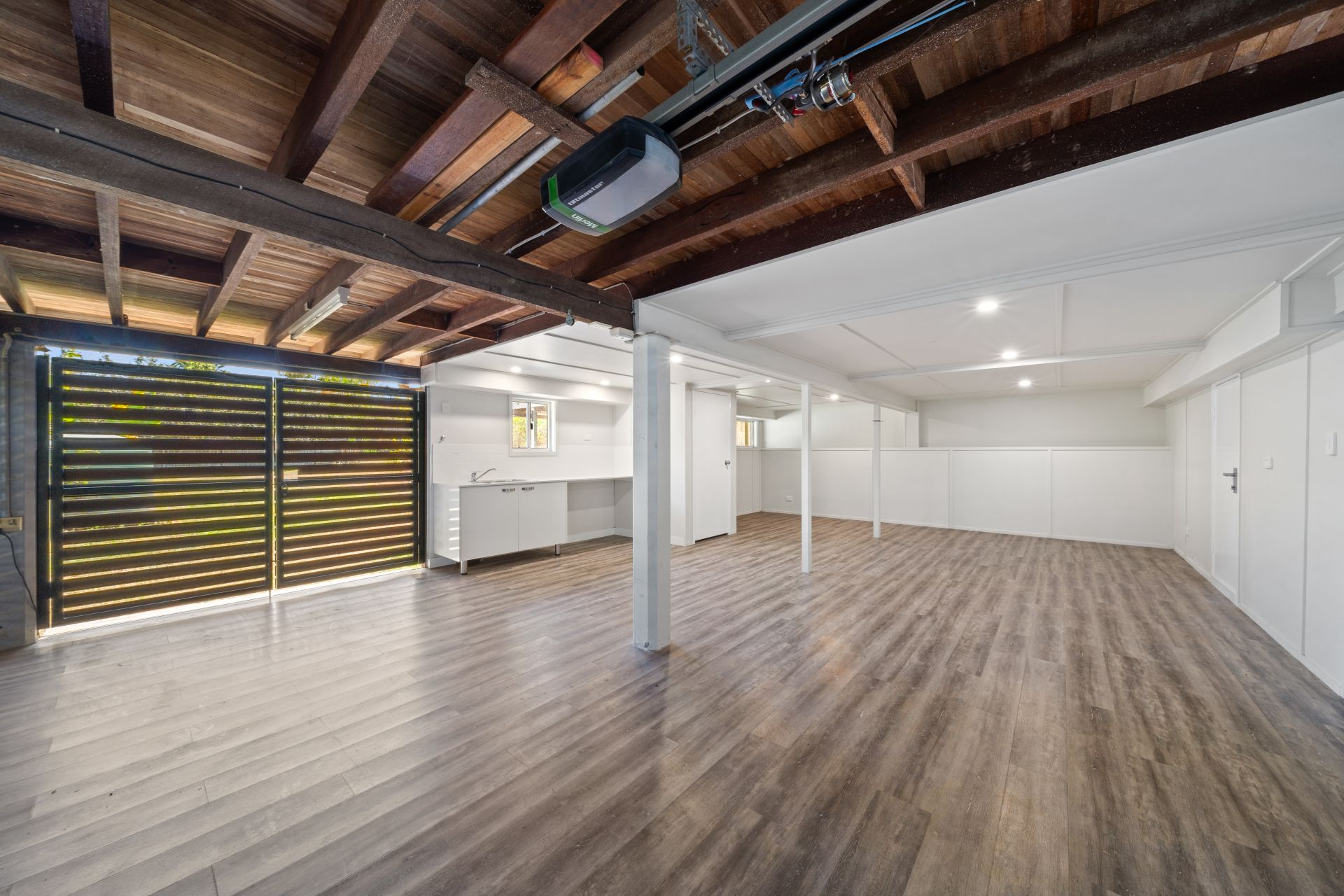 > Whilst being shy of legal height the possibilities are only limited by your imagination the lower level features a large multipurpose room perfect for home office or teenage retreat with timber look vinyl flooring, down lighting, power points and access to the garage as well as the yard.