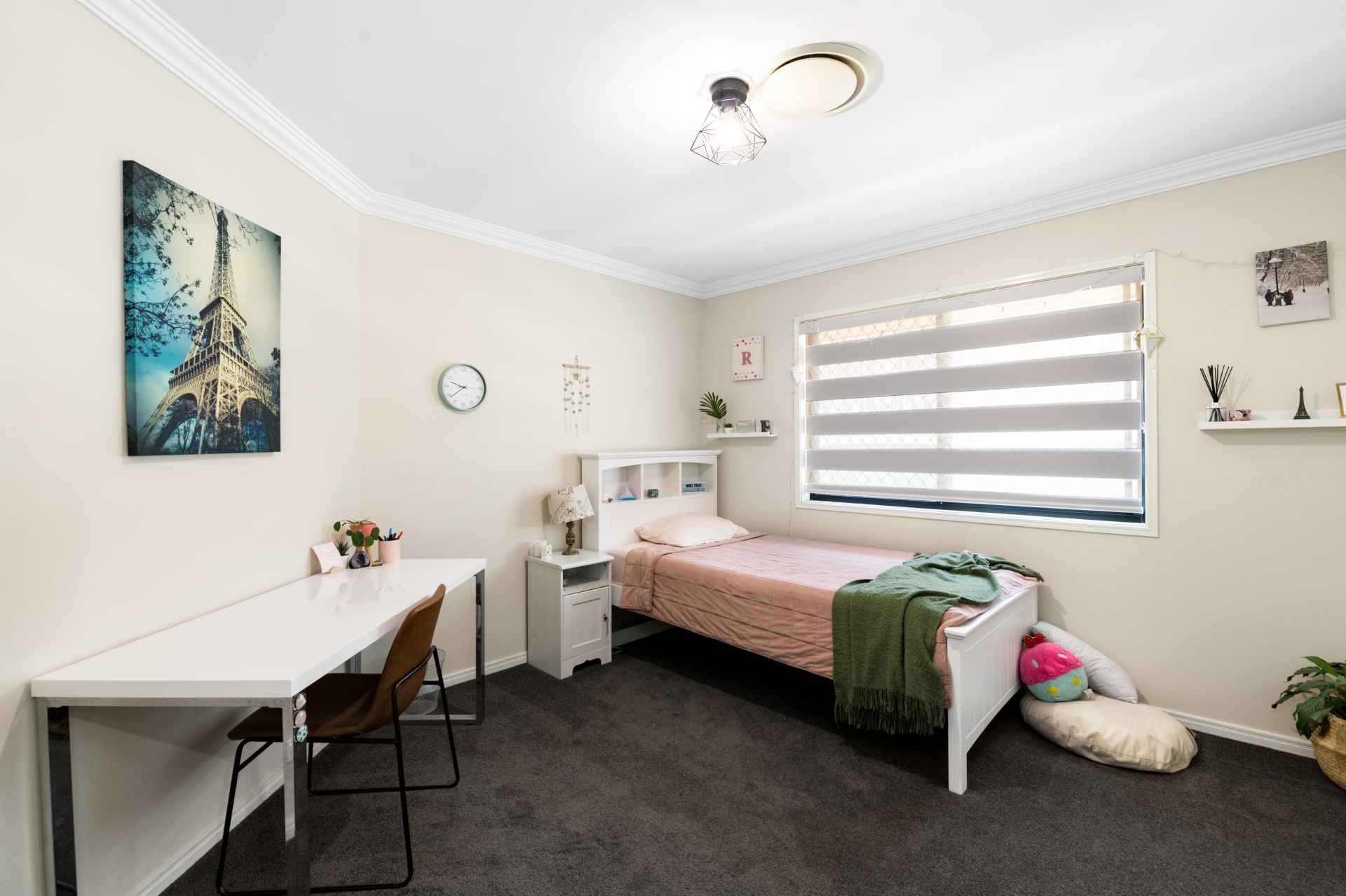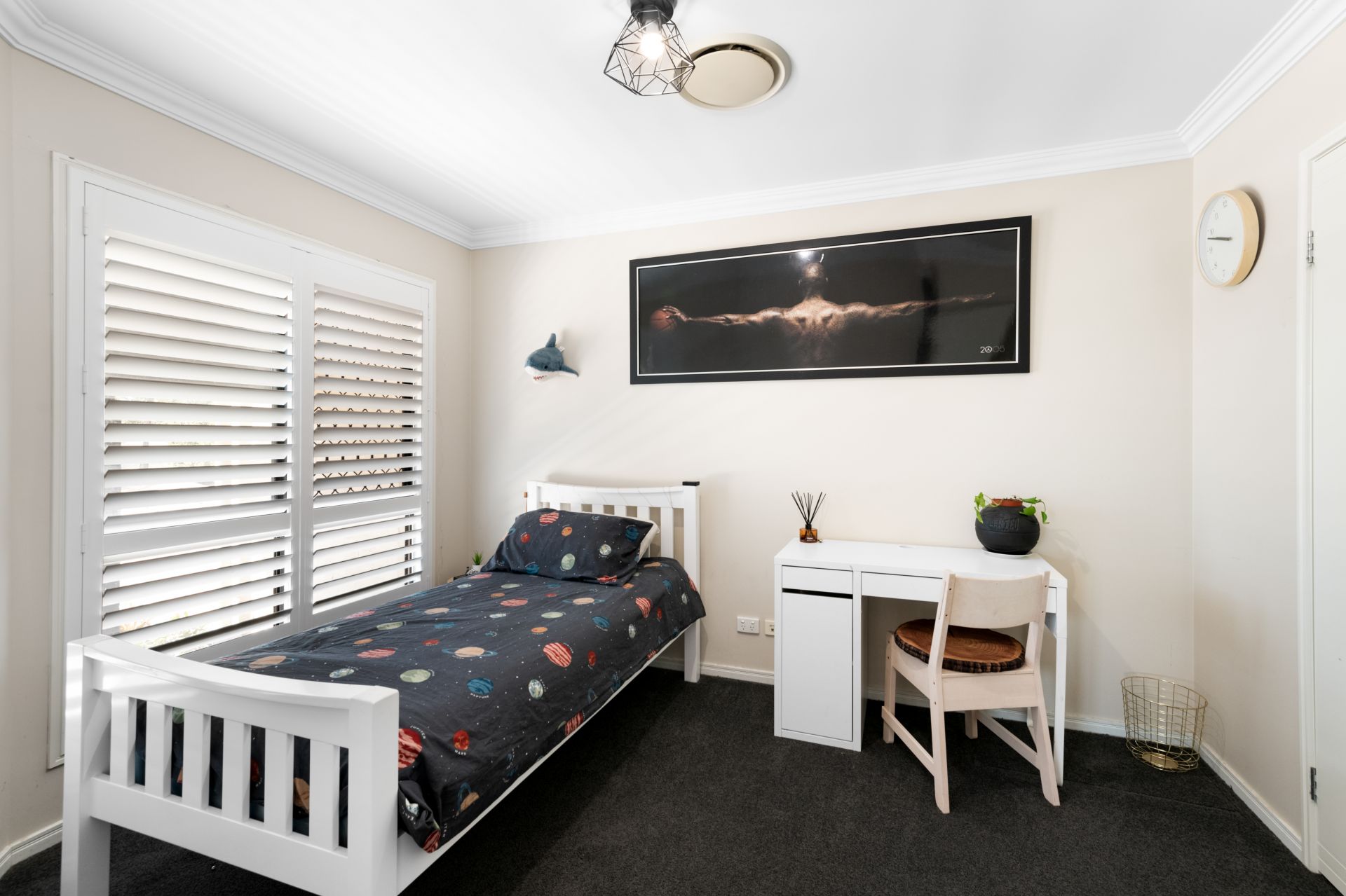 - Bedroom three features ducted air conditioning, carpeted flooring, built-in-robe, roll-down blinds, and access to the covered outdoor entertaining area.