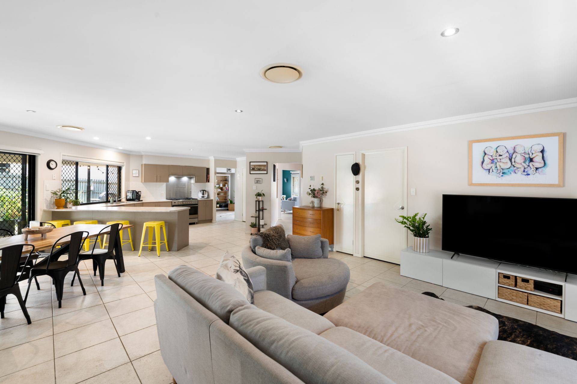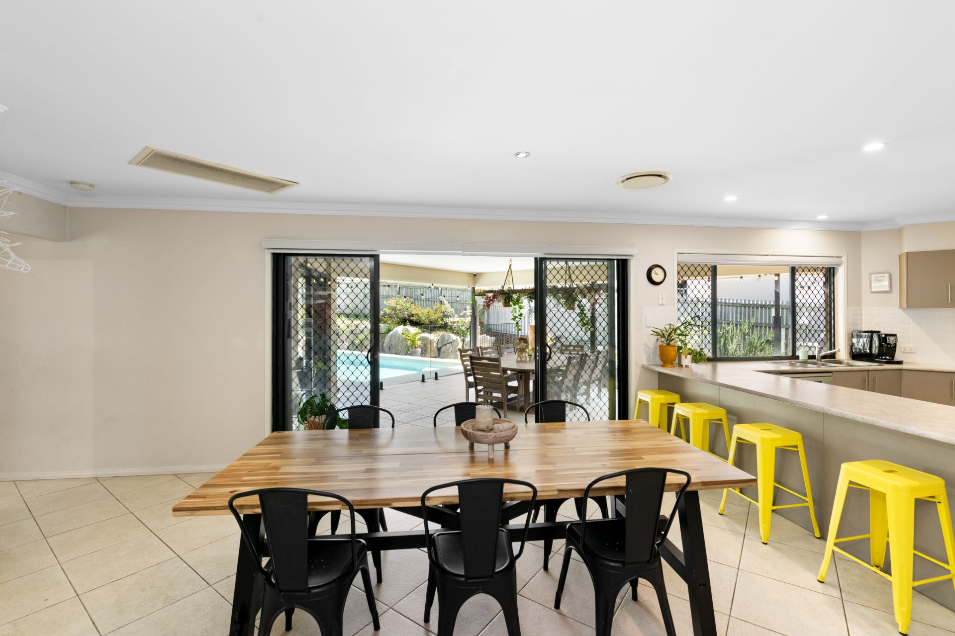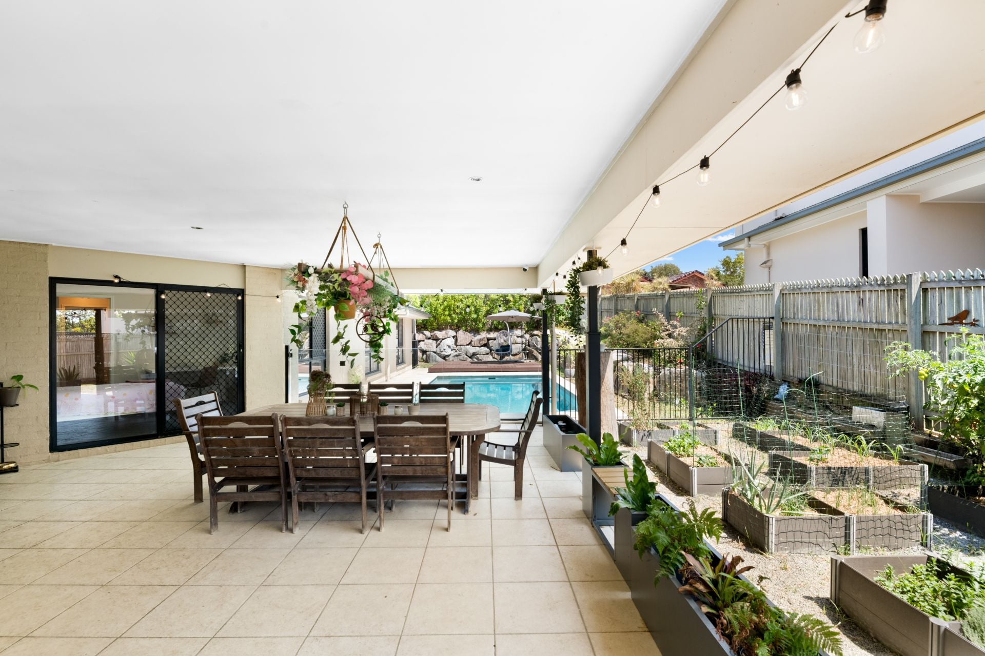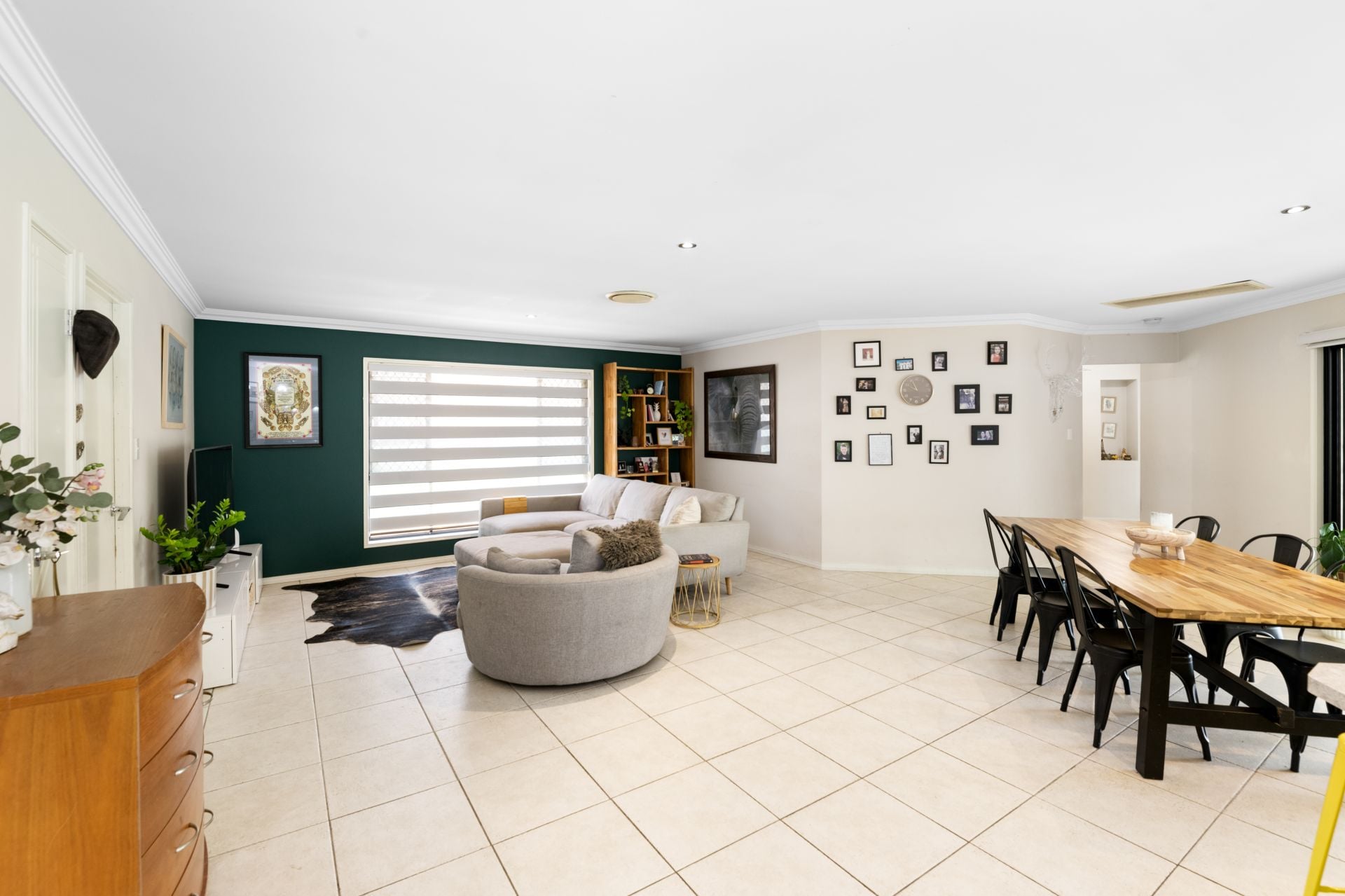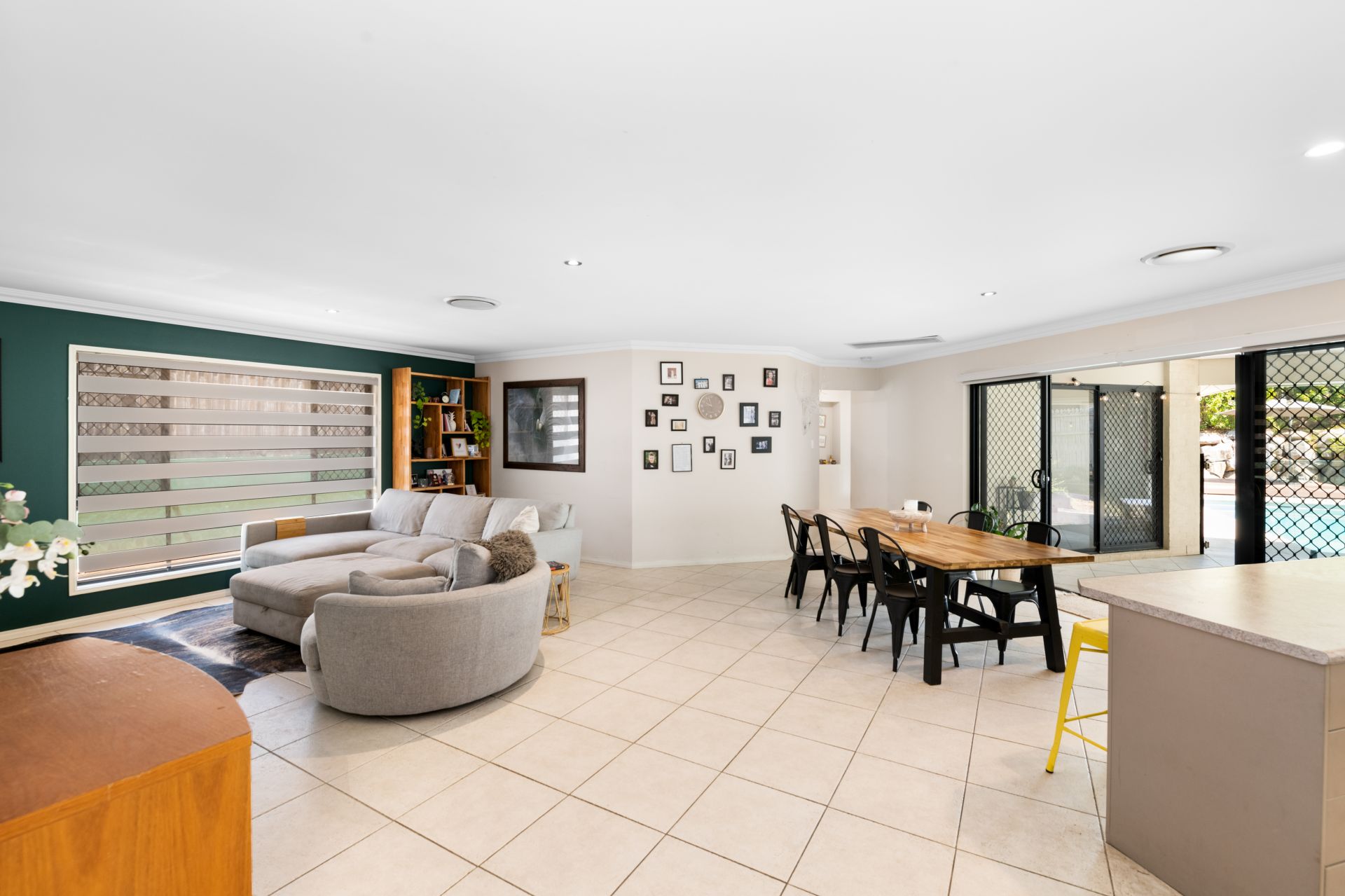 - Living and dining area share a huge open space with the home's kitchen and features ducted air conditioning, tiled flooring, electric roll-down blinds and access to the private covered outdoor entertaining area and pool.