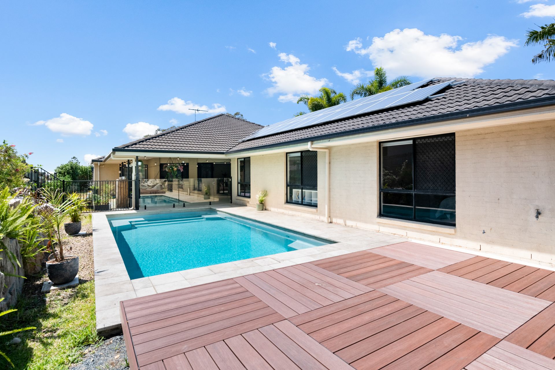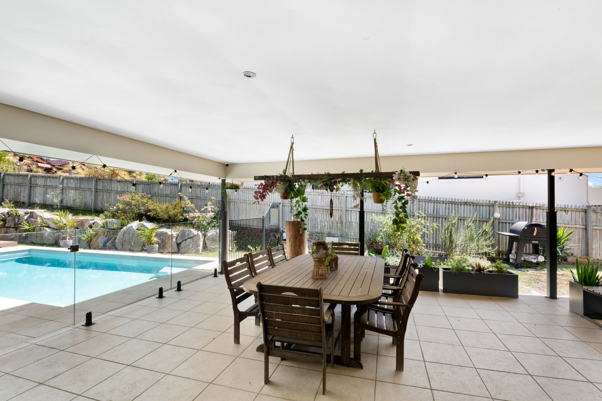 - Private covered outdoor entertaining area flows out from the home's living area through dual stackers doors and is conveniently positioned beside the beautiful in-ground swimming pool. This is a great place to sit and relax or entertain friends and family alike.