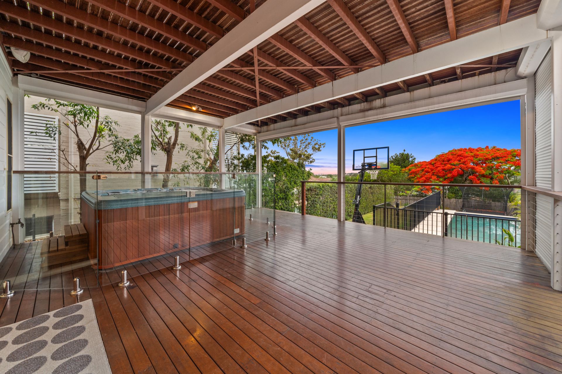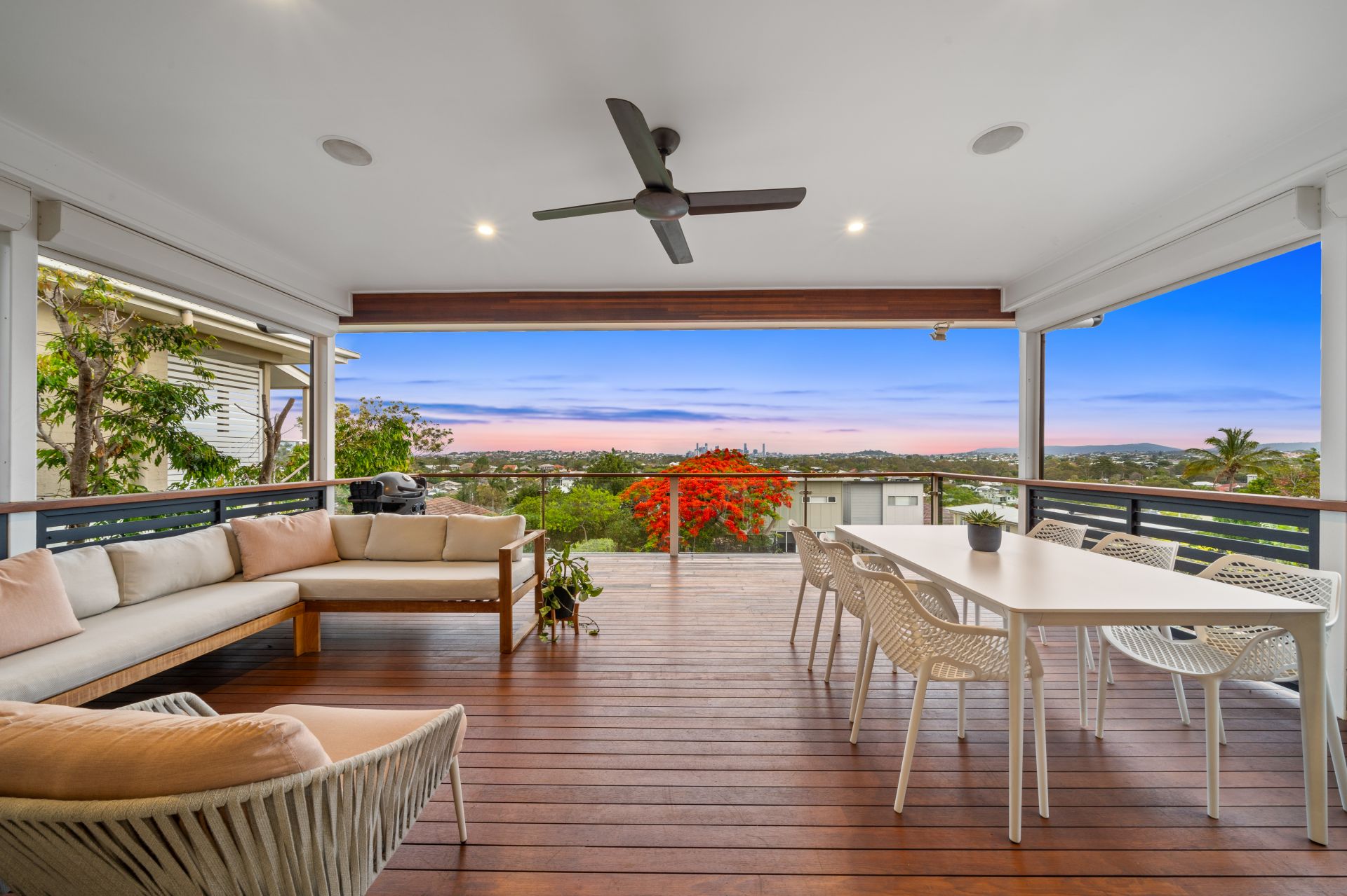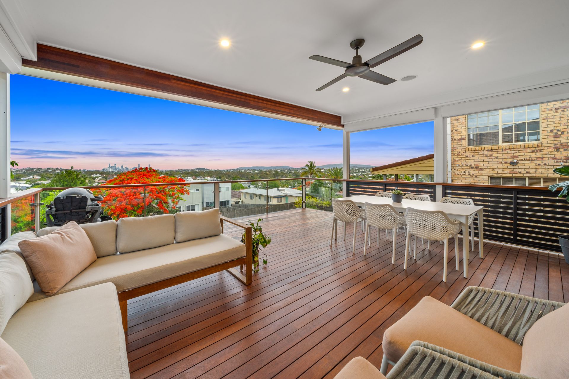 - Outdoor entertaining will be a breeze thanks to the dual covered decks boasting uninterrupted City + Mt Coot-tha views, stained decking, outdoor lighting, outdoor power points, electric roller security blinds complimented by a glistening in-ground pool, separate outdoor spa encapsulating everything there is to love about our Queensland lifestyle. All living areas have easy access to the pool.