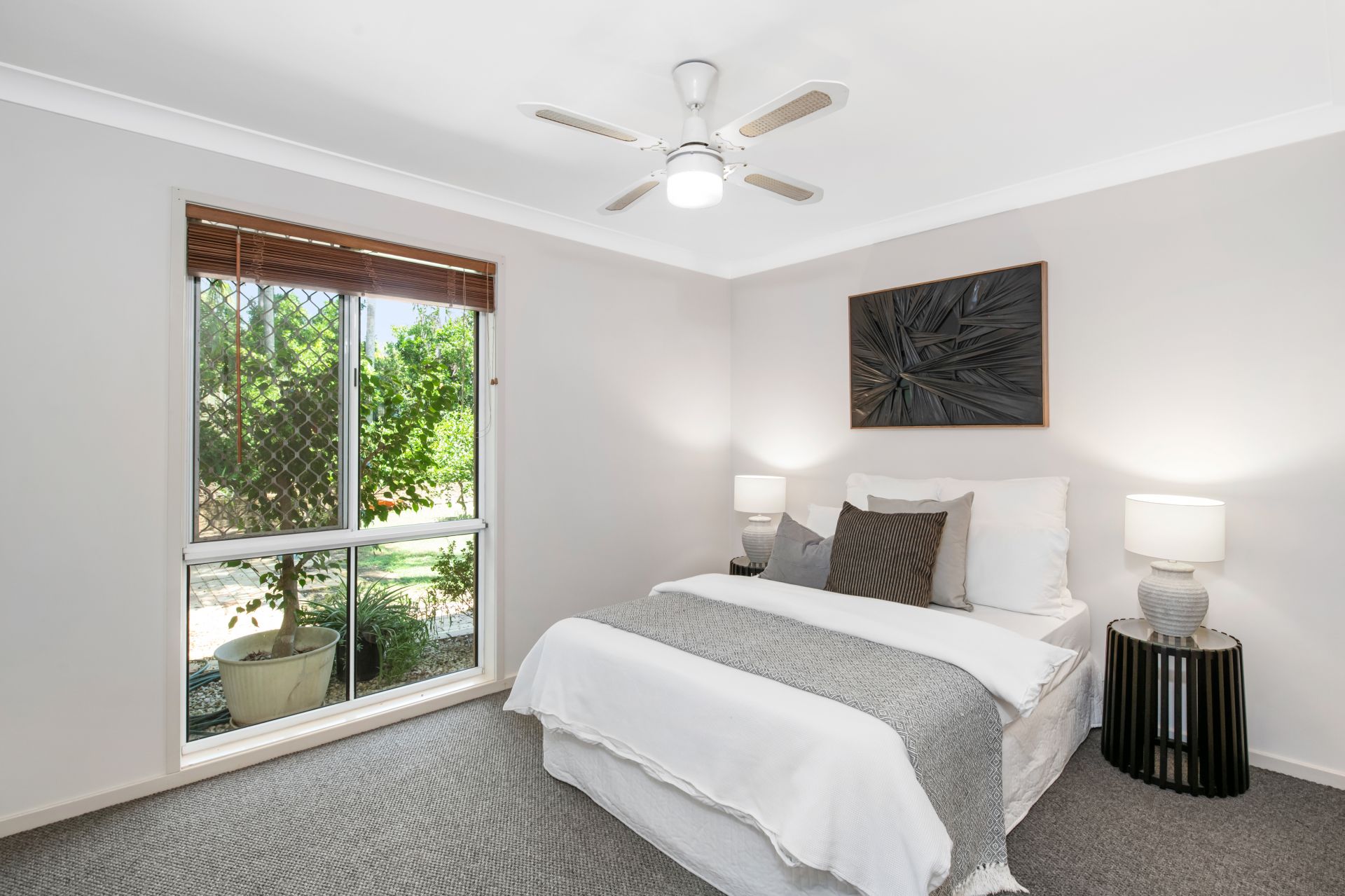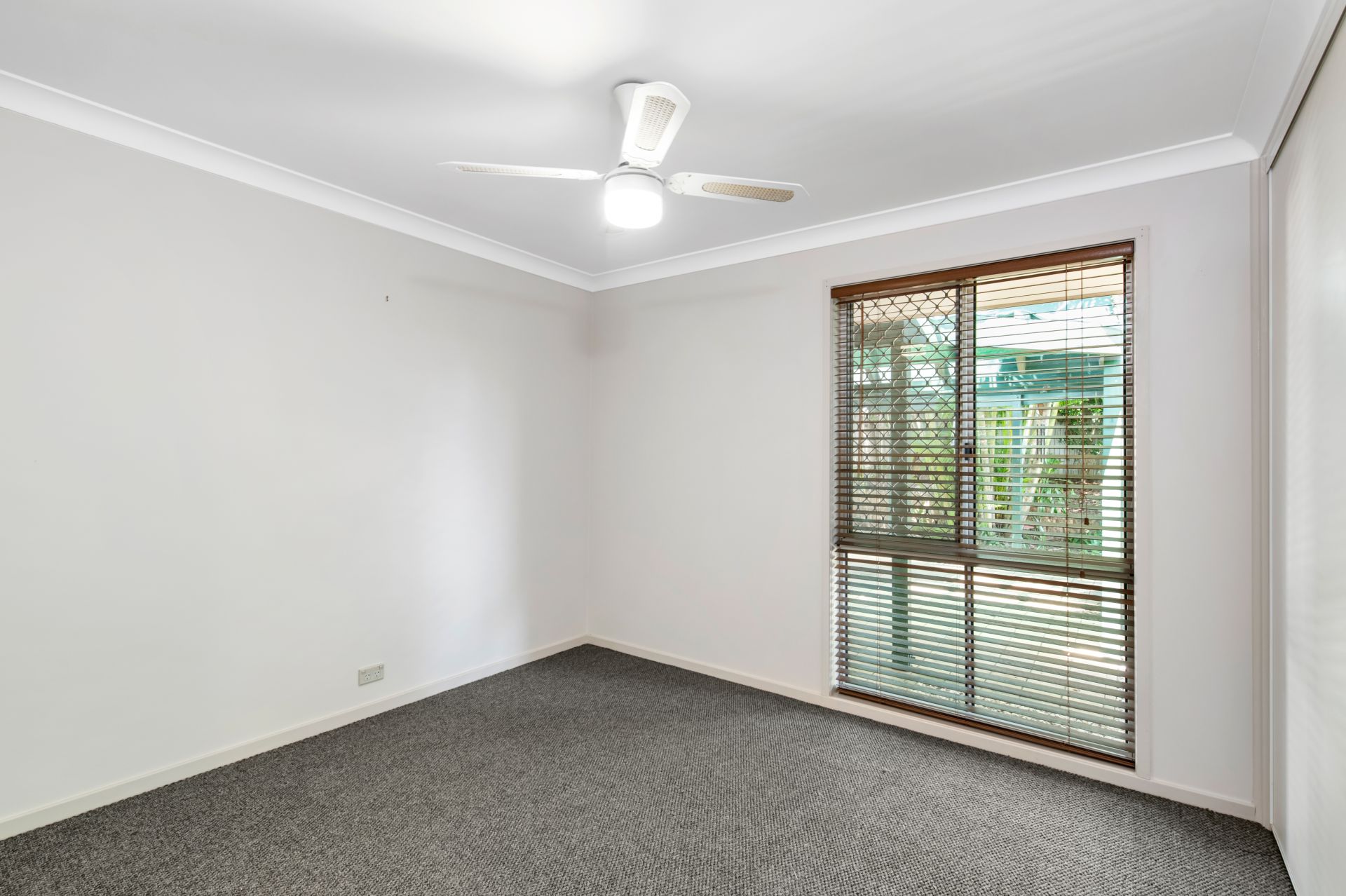 > Bedrooms two and three are both large rooms and enjoy views out over the lush back yard. They feature freshly carpeted flooring, large built-in-robes, and ceiling fans.