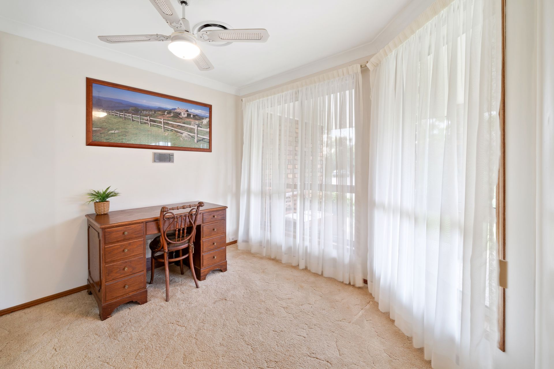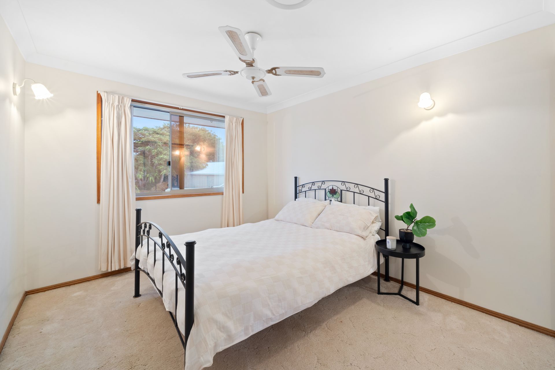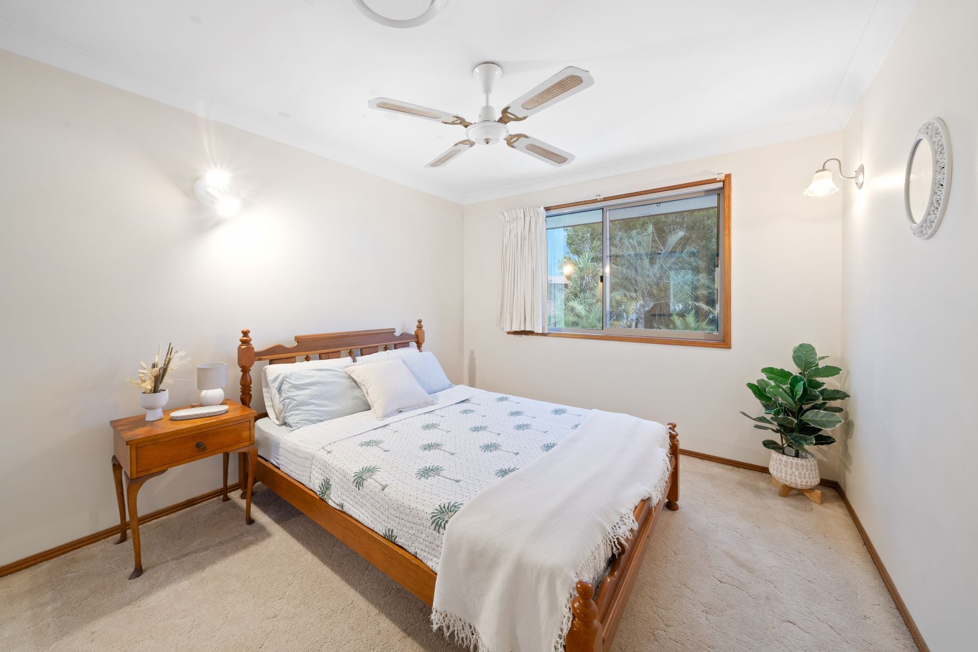 > Bedrooms two & three enjoy ducted air-conditioning, ceiling fans, sconce lighting, carpet flooring, built-in robes, sliding window with curtains.