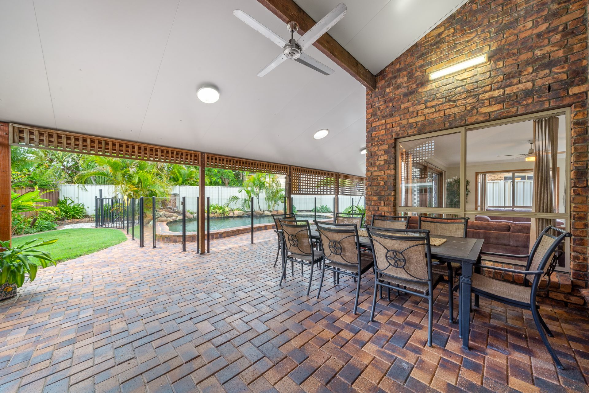 - Outdoor entertaining will be effortlessly enjoyable with the expansive, covered patio and shimmering inground pool. With its brick flooring, sparkling pool, meticulously tended gardens, and fully fenced yard that's perfect for kids and pets, it embodies the essence of Queensland living.