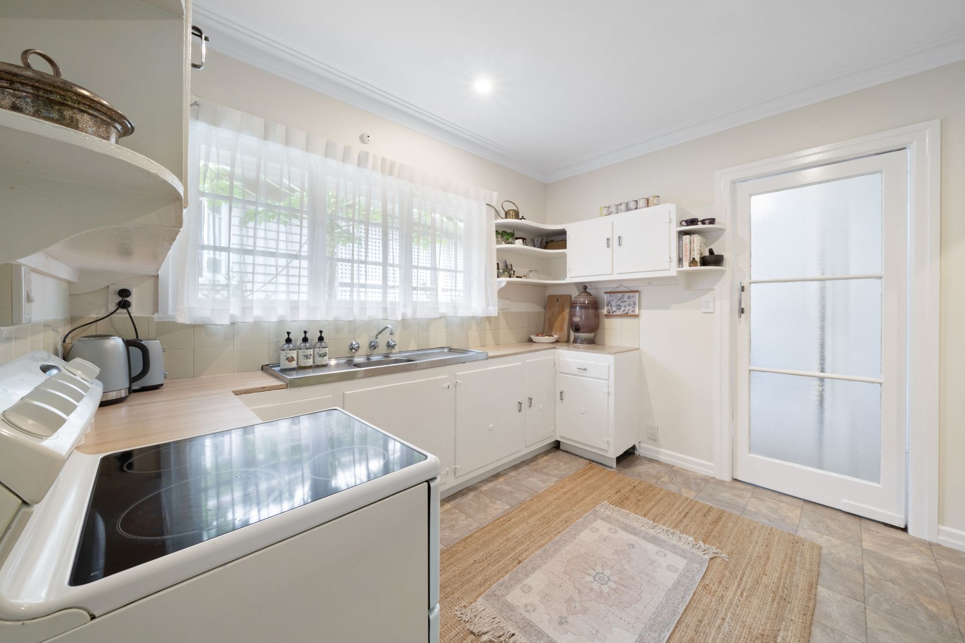 -Separate laundry located off the kitchen/hallway is a great size including a laundry tub, louver windows and door with a ramp to the backyard.