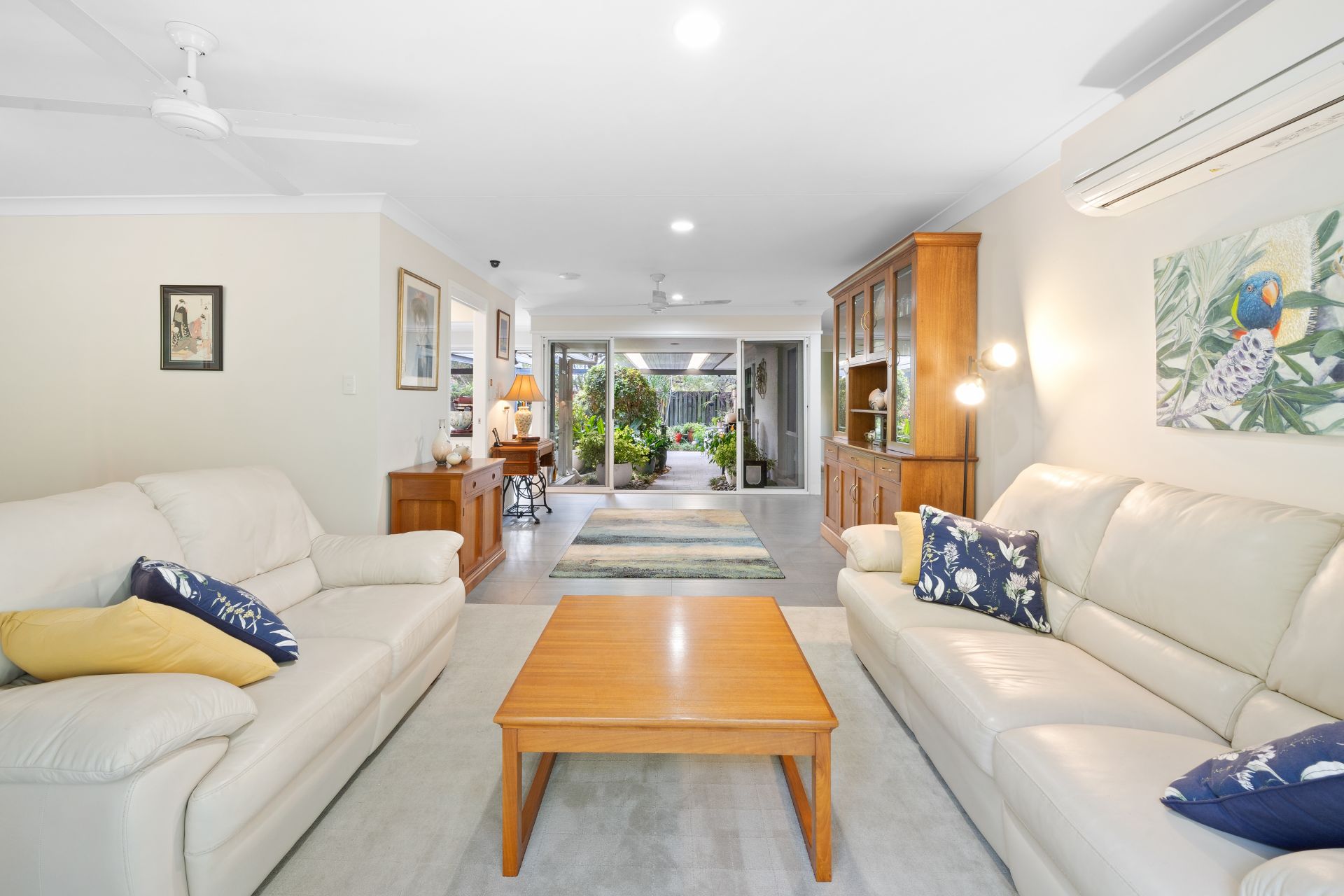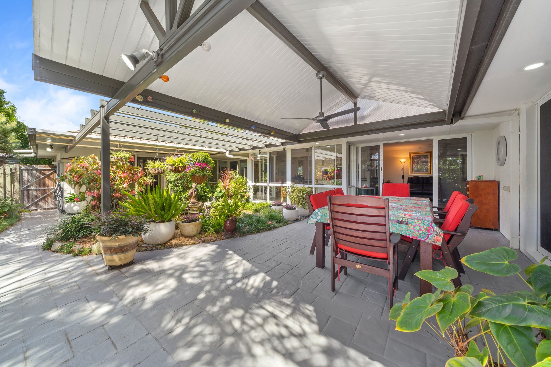 > The gargantuan covered patio that captures cool breezes, is perfect for providing open air entertaining, featuring outdoor lighting, multiple internal access points teamed up with the lush botanical offering along with the tranquil central water feature encapsulates everything there is to love about our Queensland lifestyle making it the perfect space to relax and unwind with family and friends.