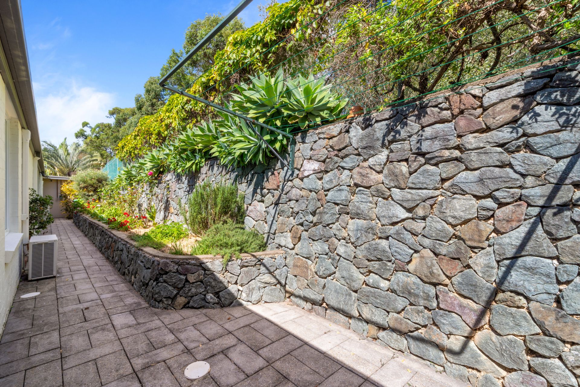 - The separate laundry features laminate cabinetry with wash tub, linen cupboard, custom hanging space and access to the yard