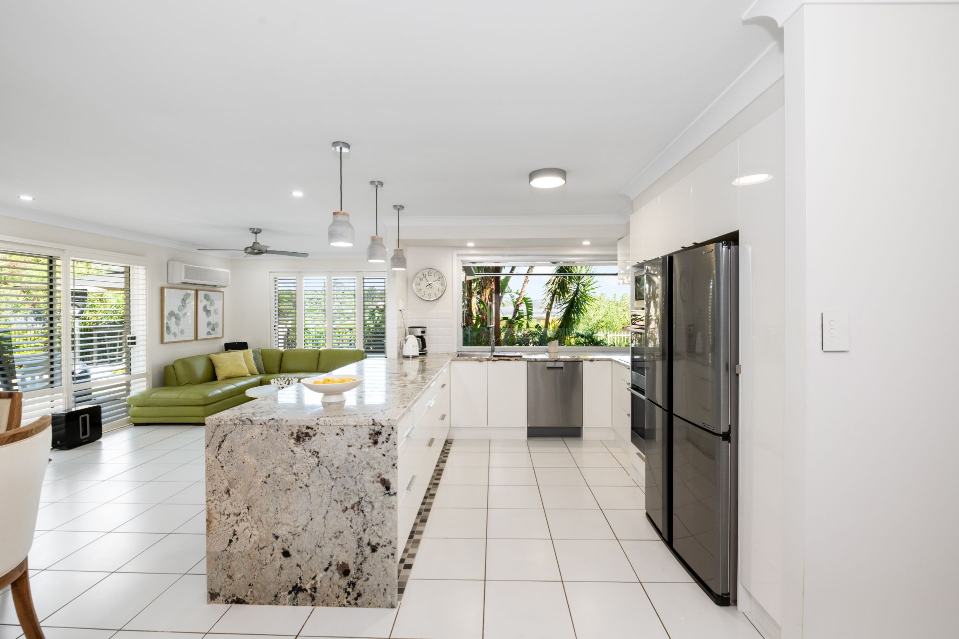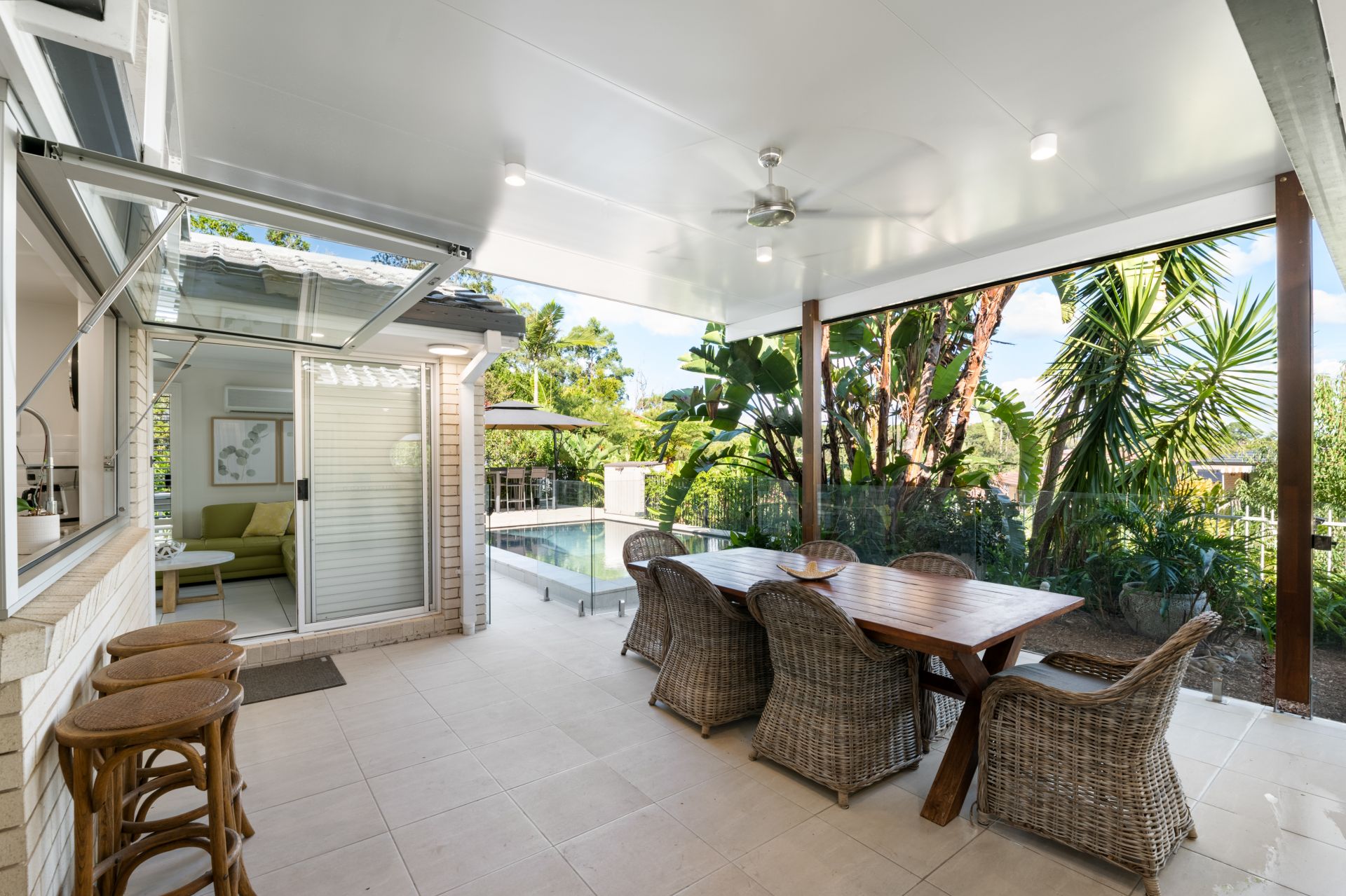 - The home's stunningly renovated kitchen enjoys views across the covered outdoor entertaining over the sparkling inground swimming pool and beyond through the large hydraulic awning window. Features include;