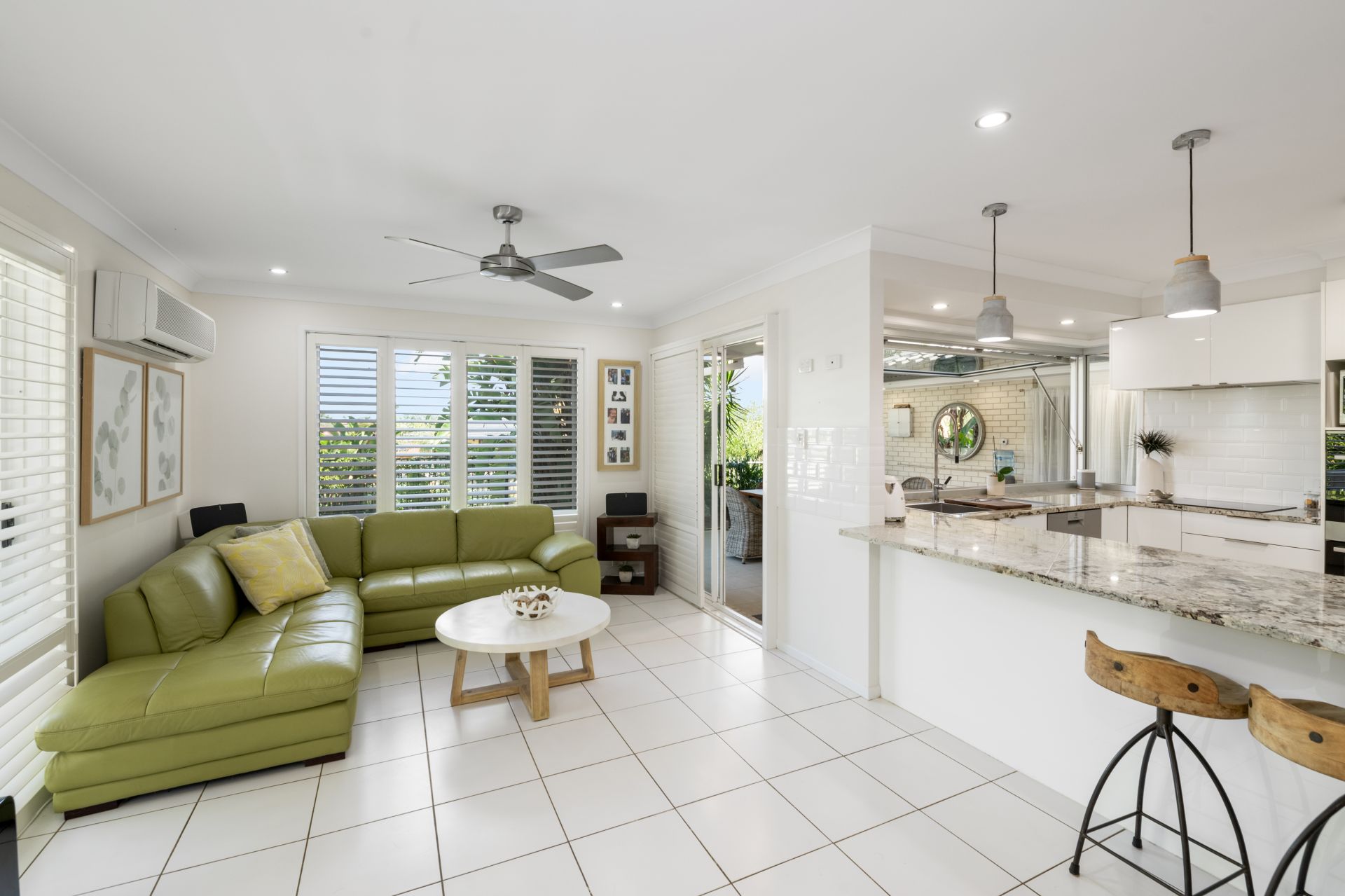 > Living room and meals area encompass a great open space along with the homes kitchen and features tiled flooring, split system air-conditioning, ceiling fan, plantation shutters and access to the covered outdoor entertaining area.