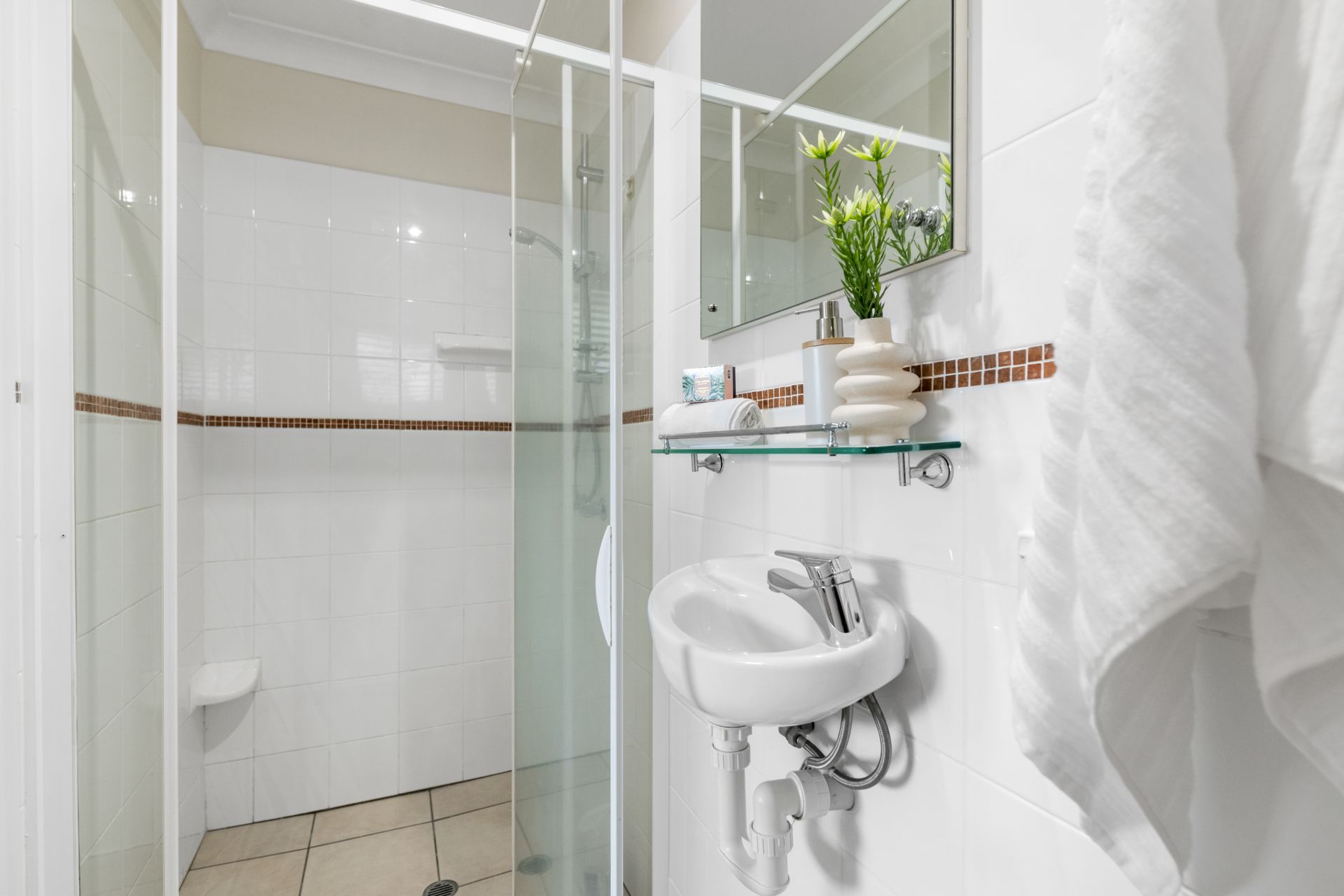 > Bathroom two is the ensuite to the Master bedroom and features tiled flooring, shower, single vanity, toilet and blinds.