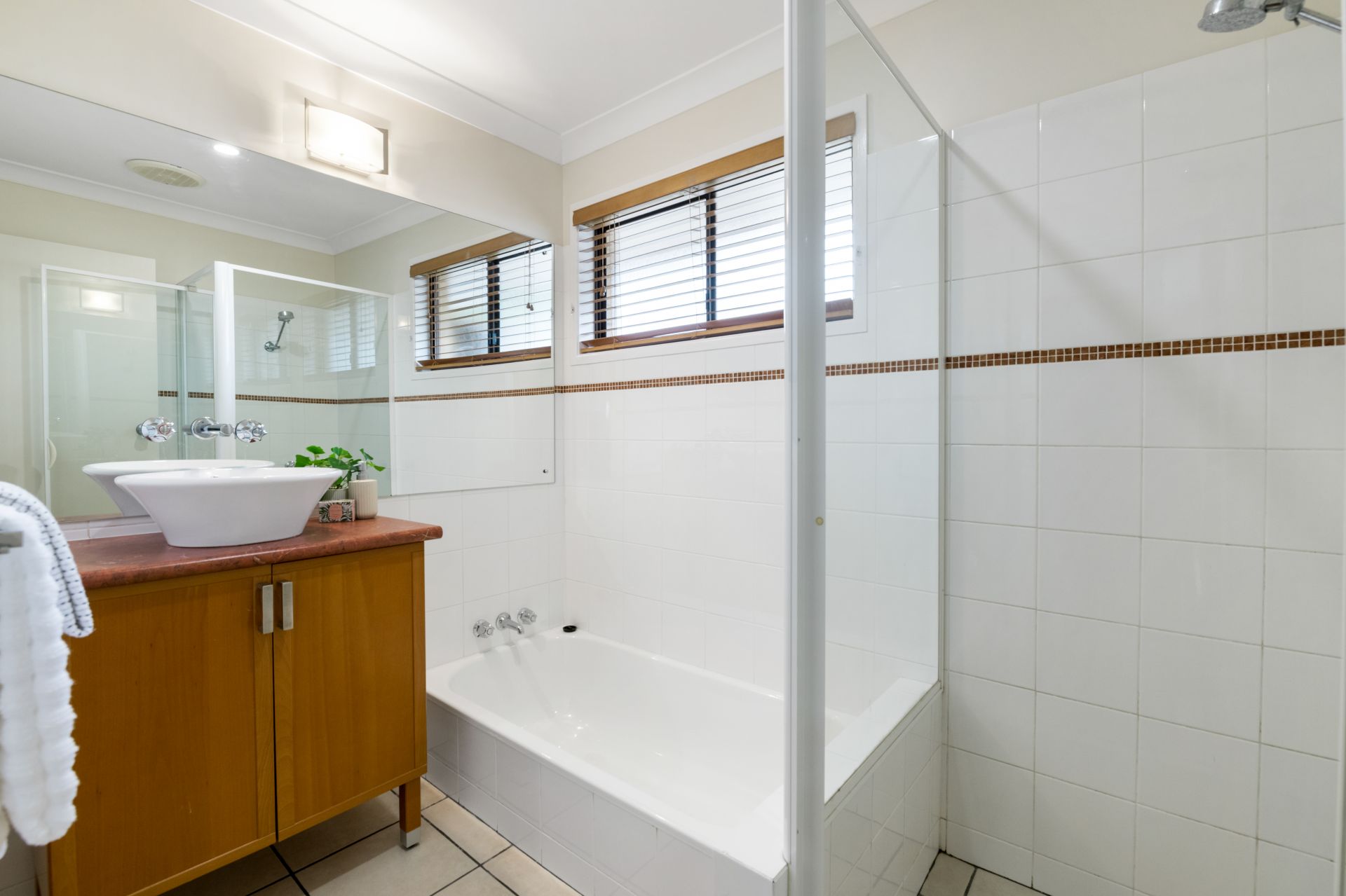 - The Laundry features tiled flooring, washtub, storage cupboard and external access.