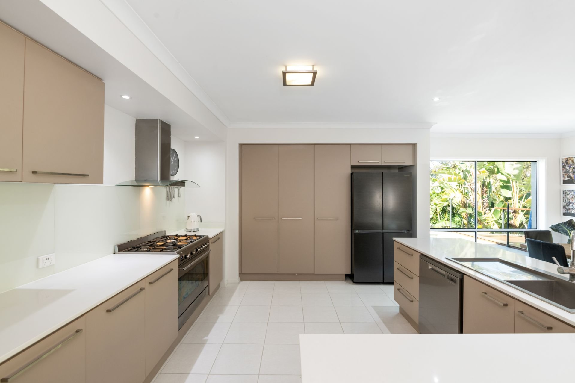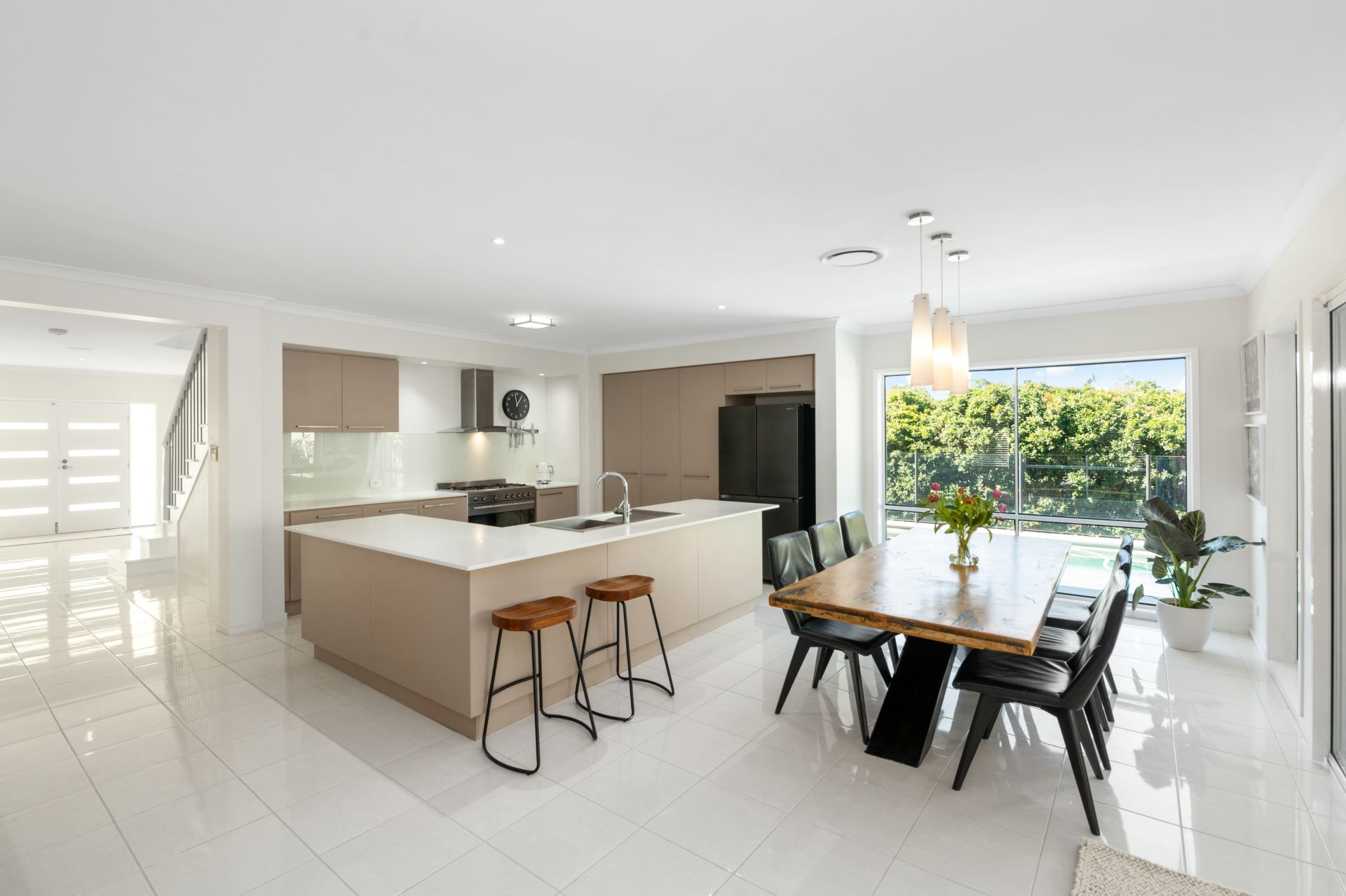 - The modern, light-filled kitchen shares a large open plan home's Dining and Living rooms. Features include: