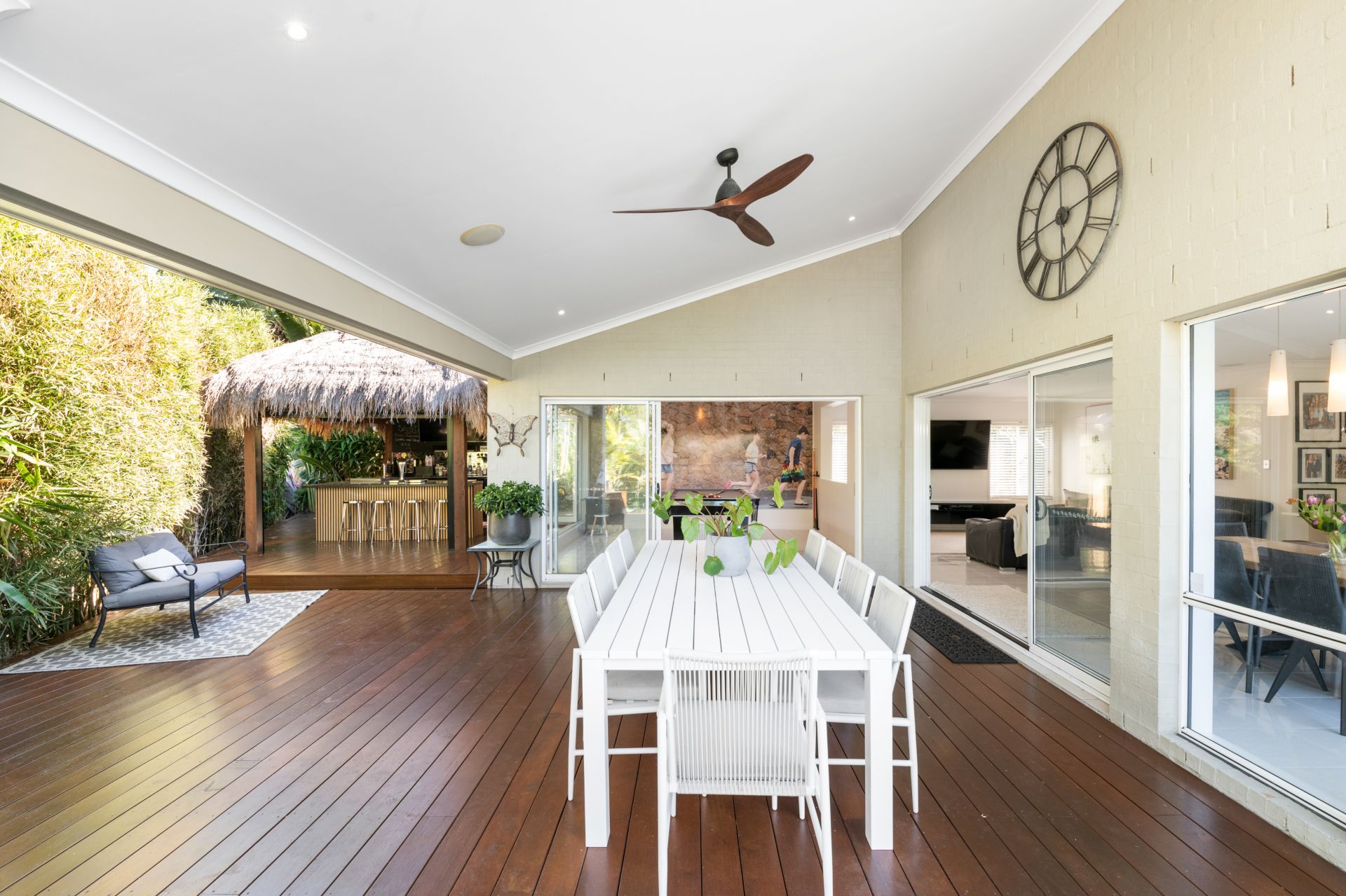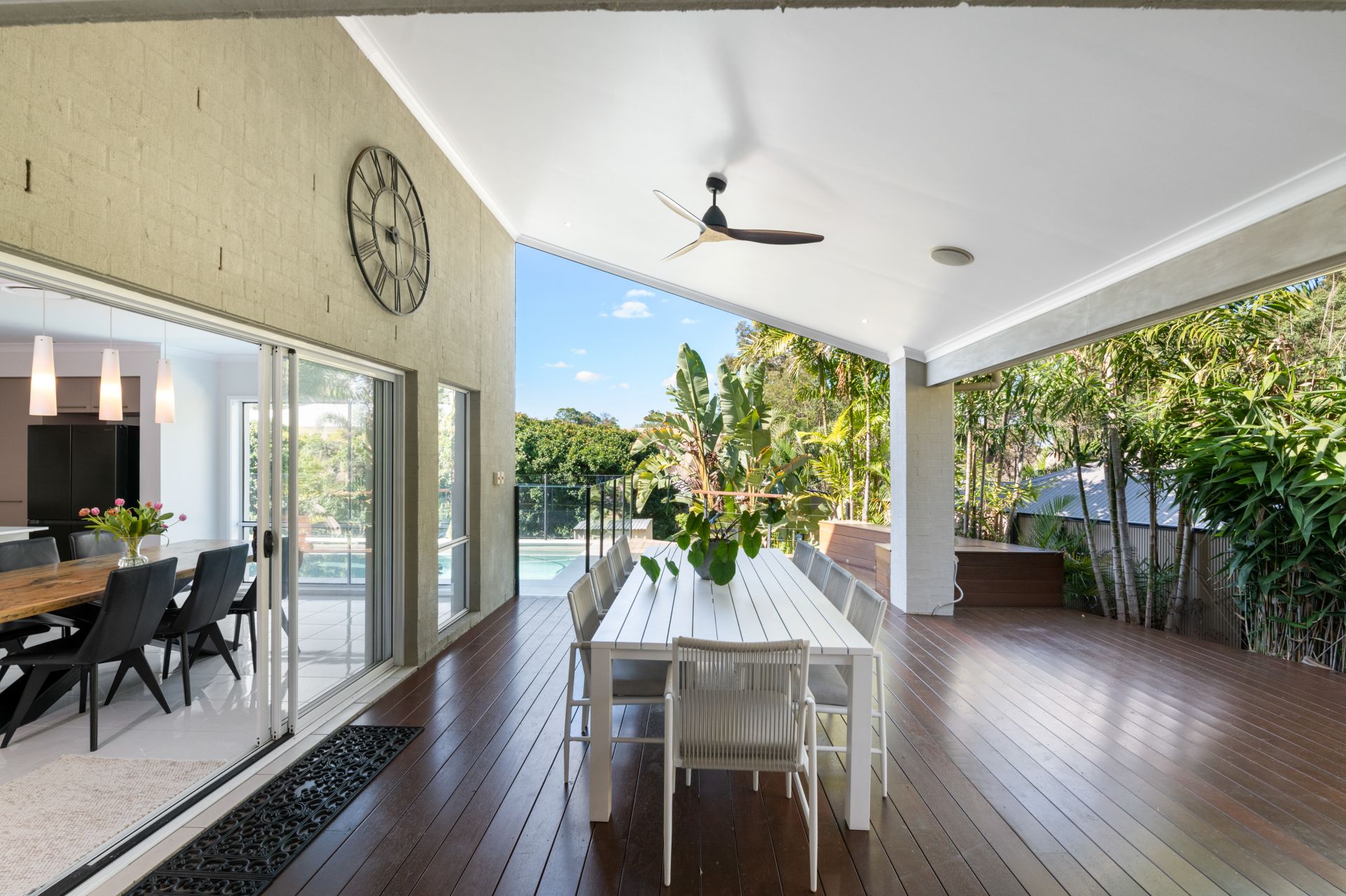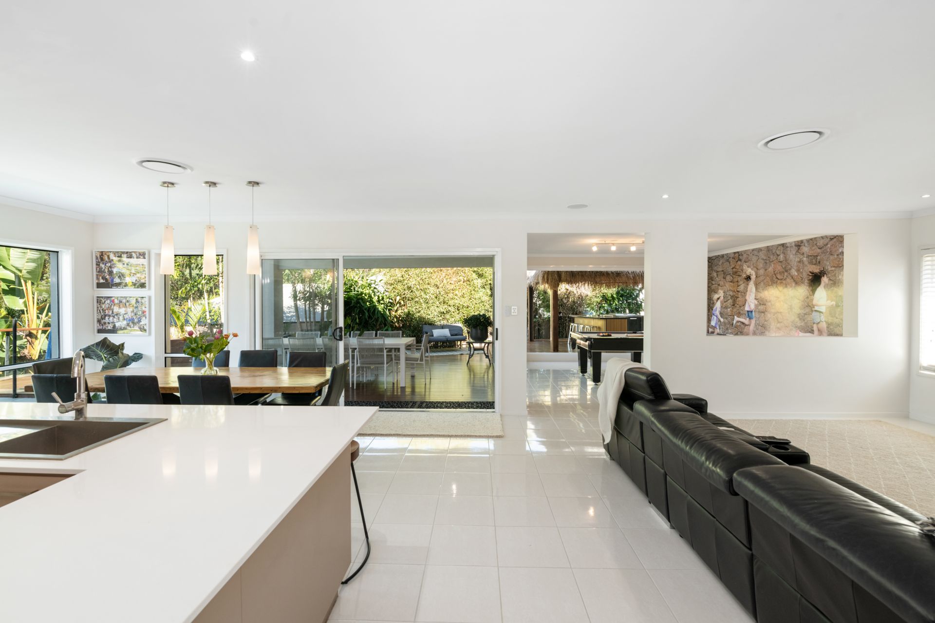 > The Living room and Dining area share a great open space and features tiled flooring, 2.6m high ceiling, integrated speakers and wall length stacker doors that open out to the incredible outdoor entertainer's deck.