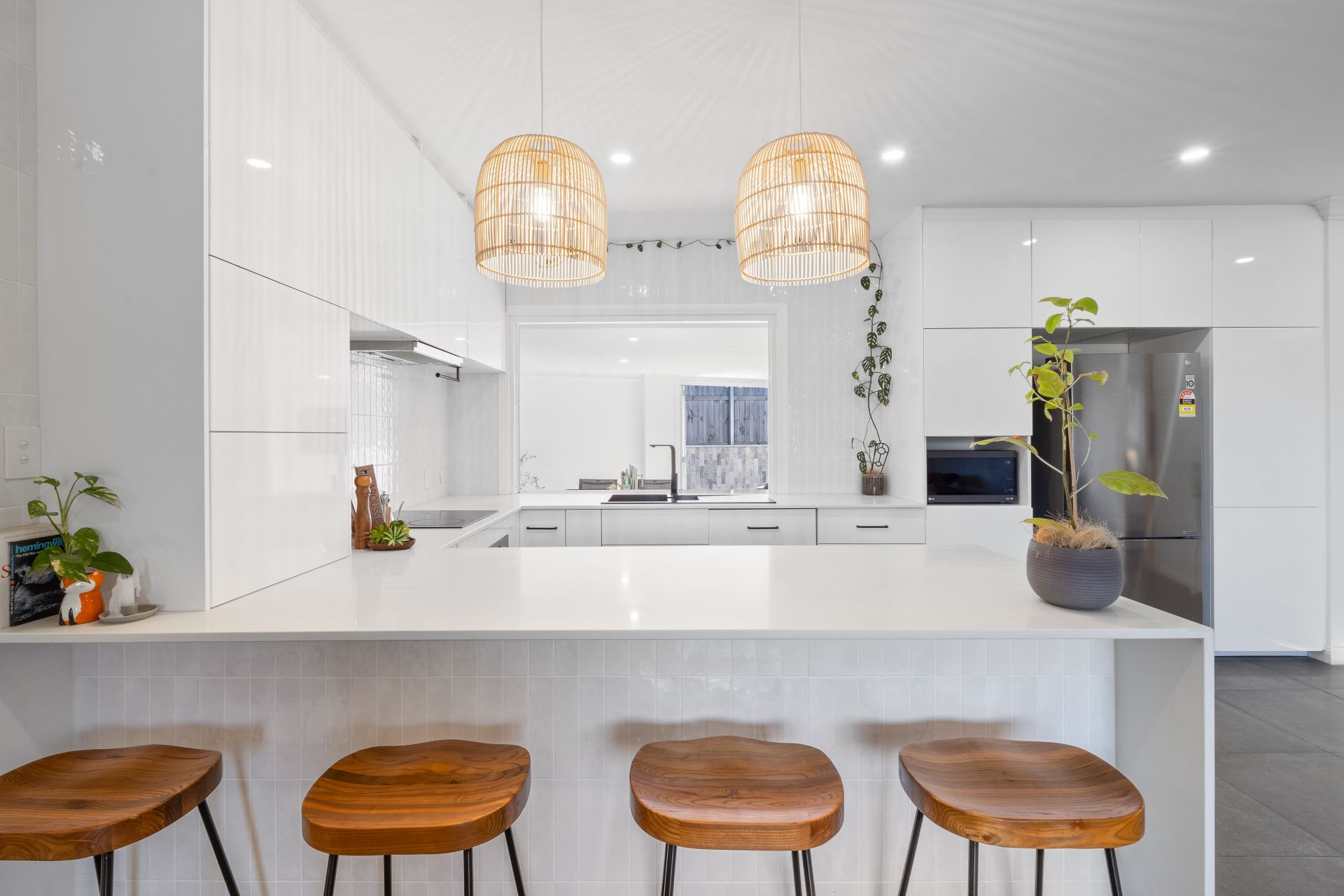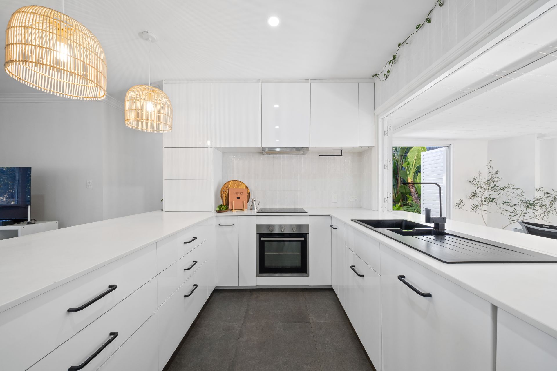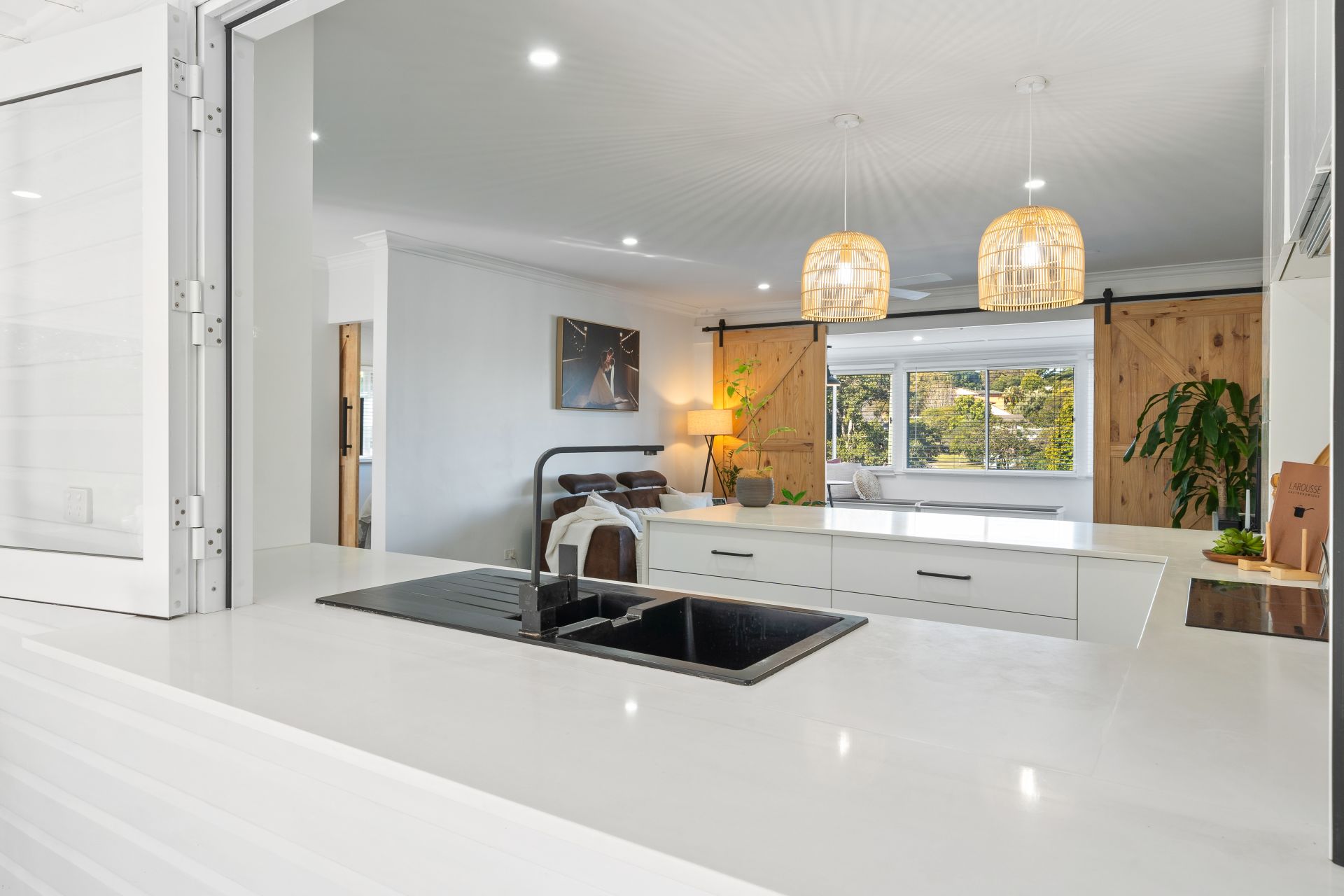 > Pass-through window to outdoor entertaining areas