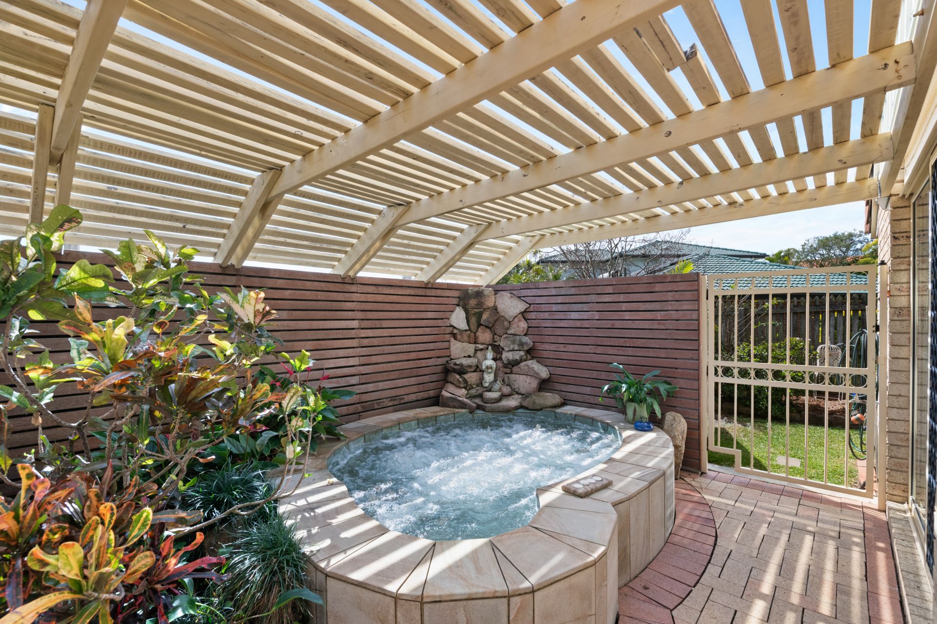 > The outdoor entertaining area is accessible via the home's Family and living rooms. This very private covered area is surrounded by lush gardens built in spa bath for those relaxing evening dips and a private backyard. Truly the perfect place to enjoy the outdoors and serenity of this secluded pocket of McDowall.