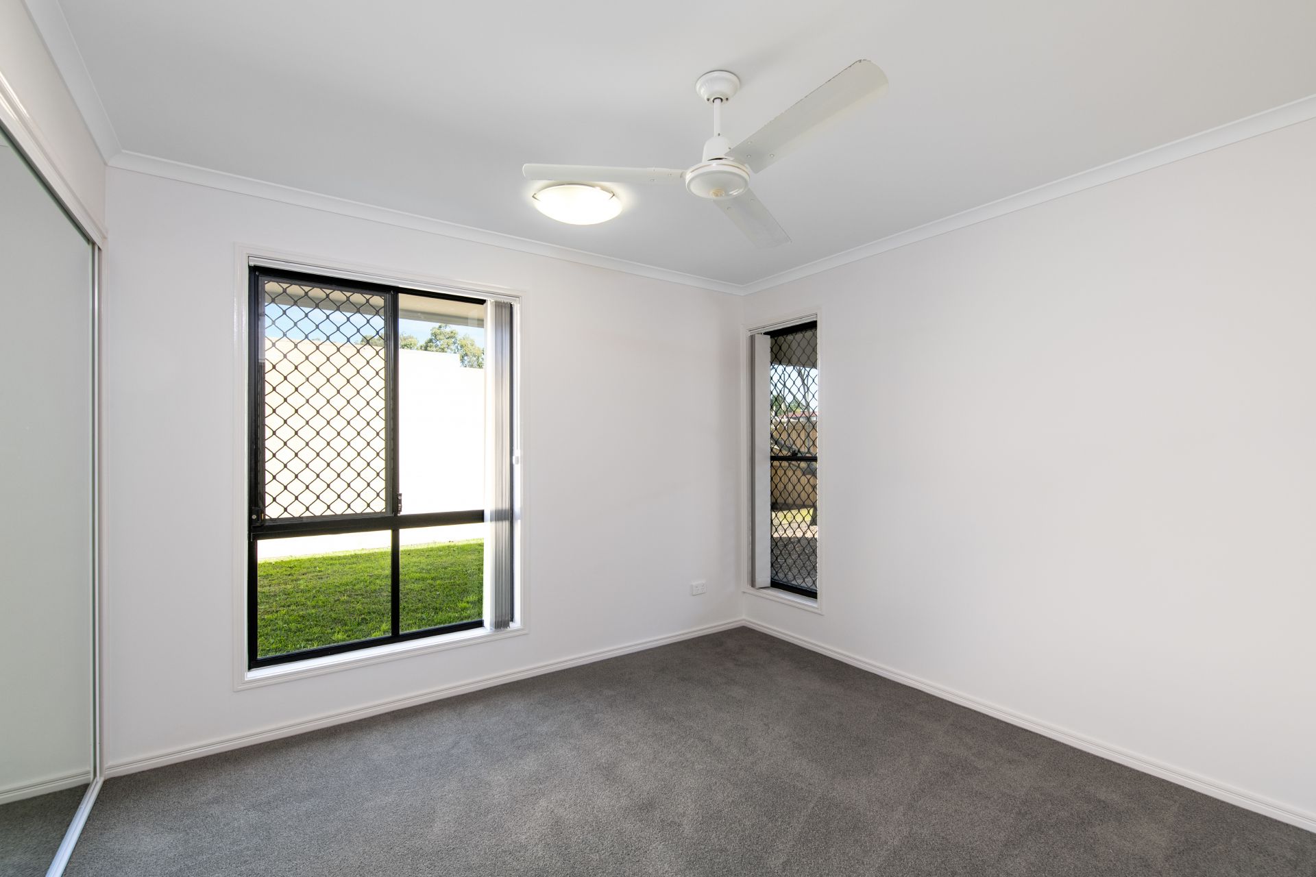 > Bedrooms two, three and four all feature freshly carpeted flooring, built-in-robes with mirrored door, ceiling fans and blinds.