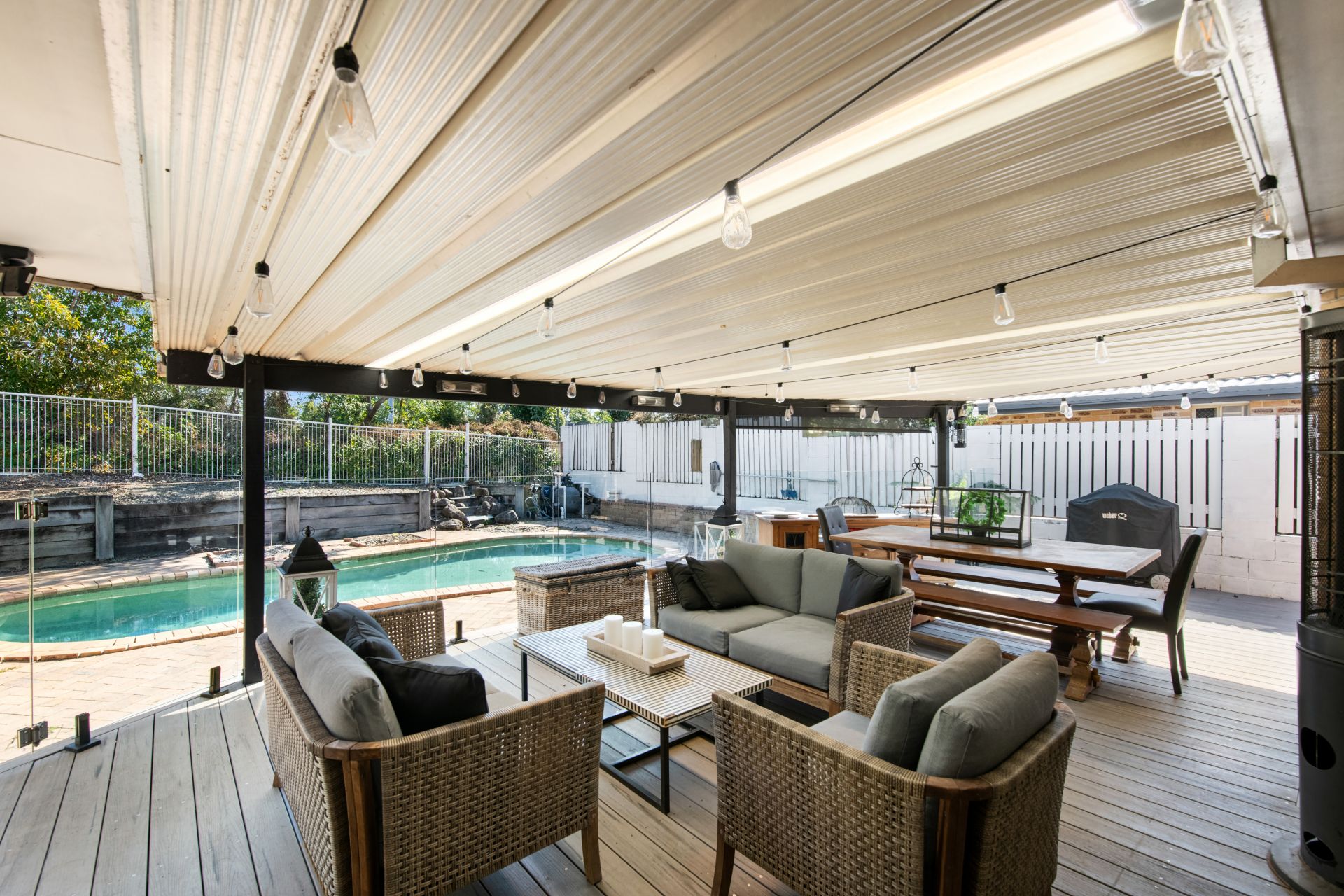 - Large covered outdoor entertaining area, Inground swimming pool