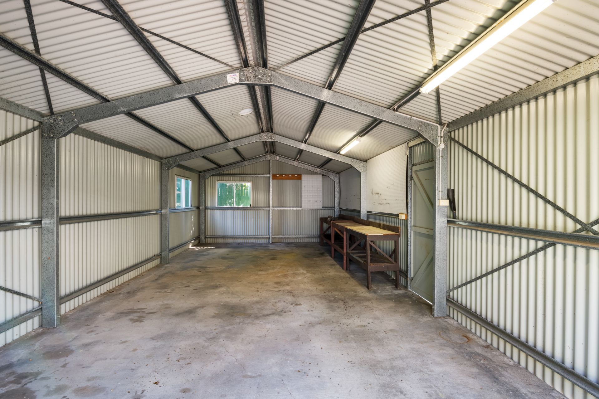 - Enormous 5m x 9m shed is perfect for a workshop plus space to store your toys! Featuring roller door and pedestrian side access, lighting, power and work benches.