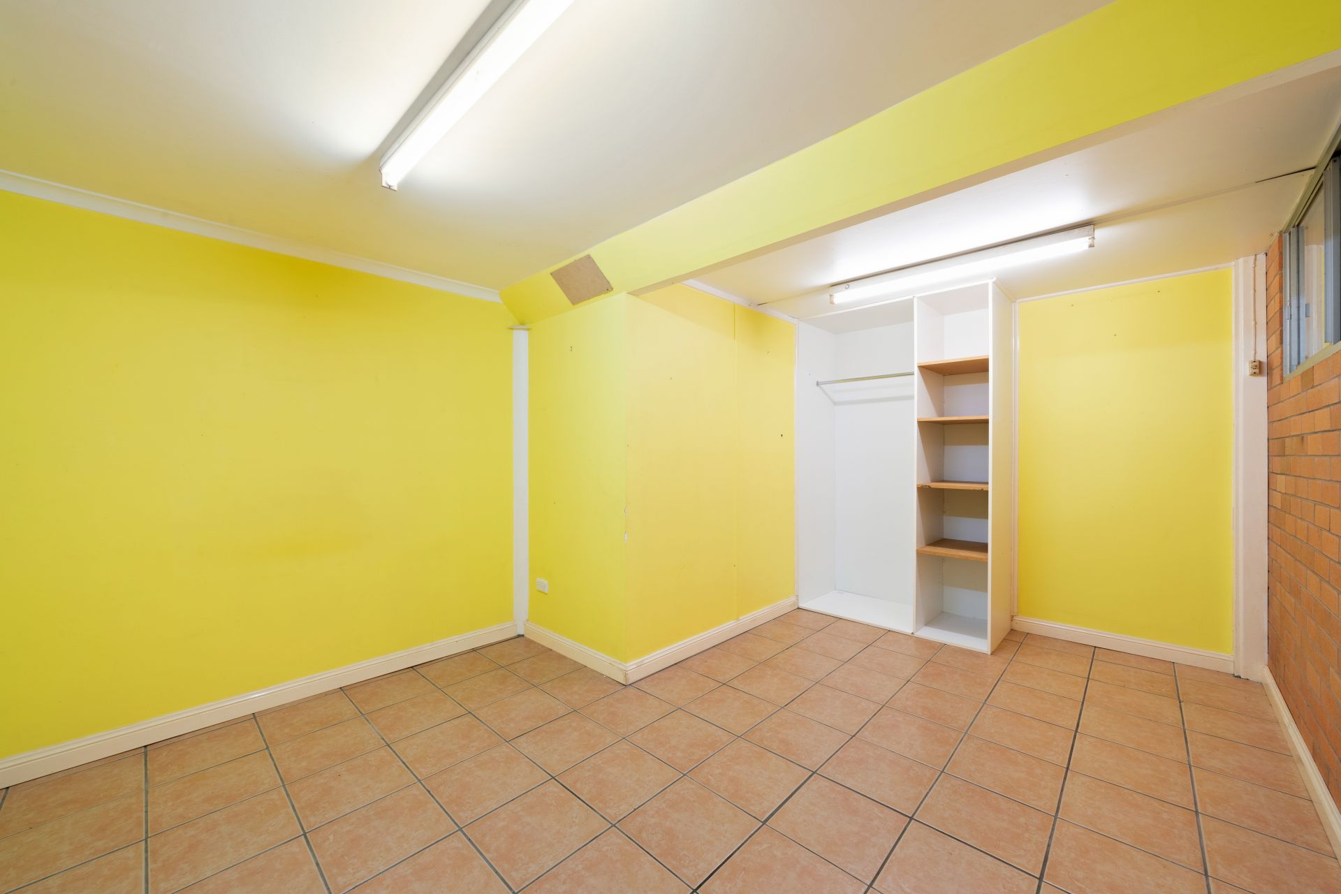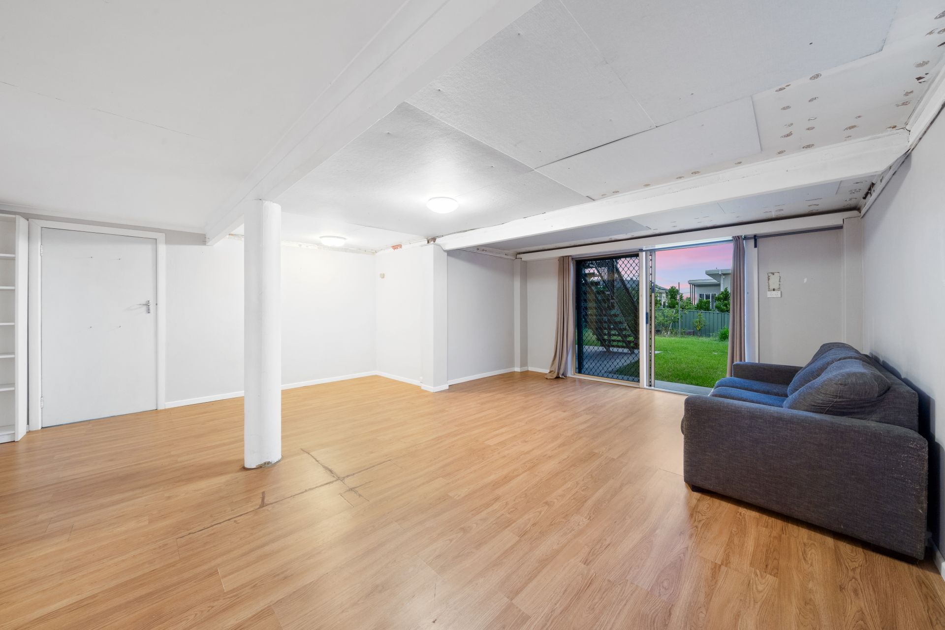 > Located on the entry level is a large multipurpose room. While it is shy of legal height, the possibilities are endless, featuring timber-look flooring, casement windows, oyster lighting, and sliding doors giving you access to the yard and rear entertaining areas.