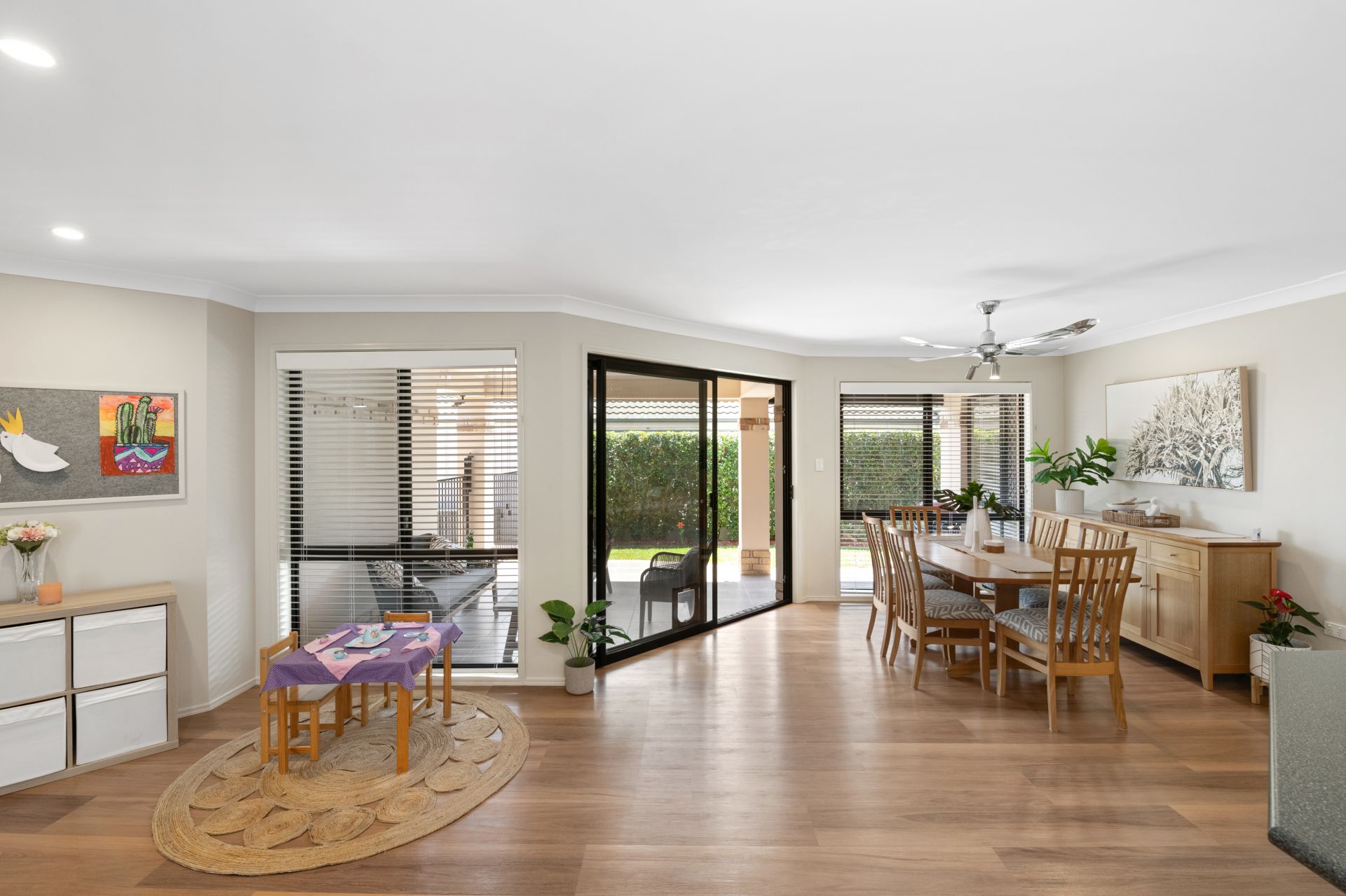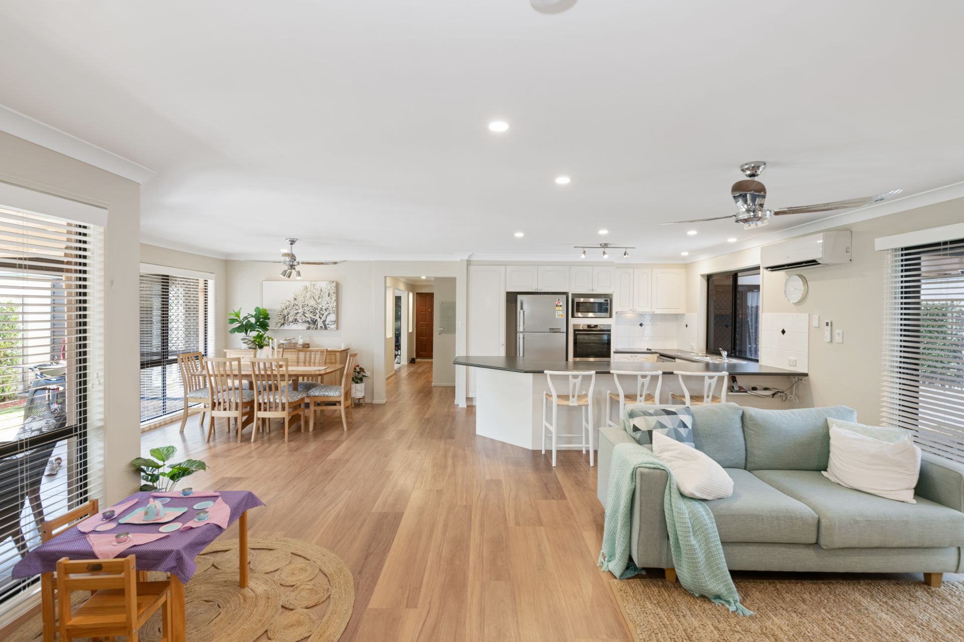 > The Family and Meals shares an open plan with the home's kitchen and flows out to the covered outdoor entertaining area and beautiful in-ground swimming pool. This great living space features Karndean timber-look vinyl flooring, split system air-conditioning, stainless ceiling fan, hardwired internet connection and new blinds.
