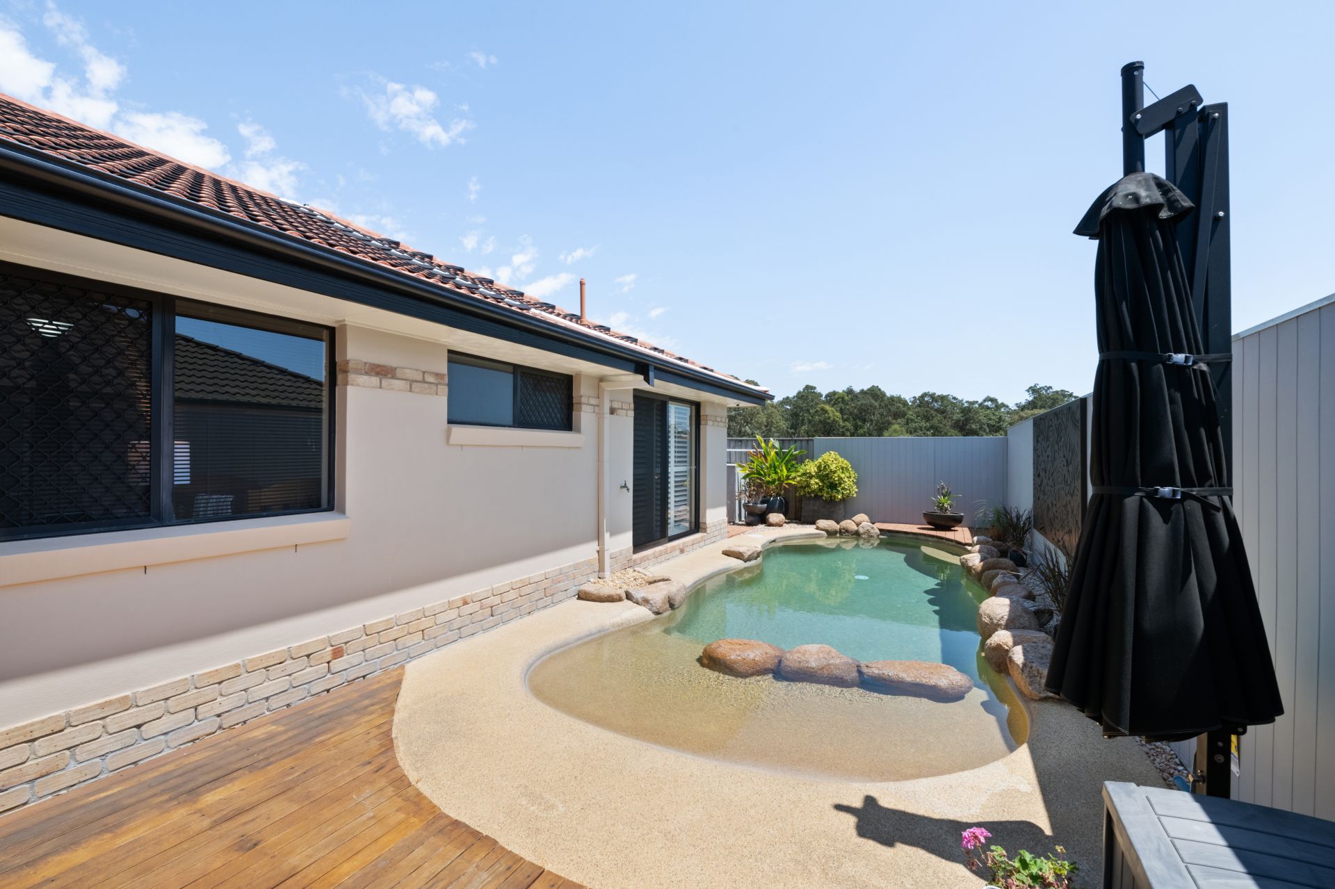 > The covered patio flows out from the Family room and sits neatly beside the resort style inground swimming pool. This great outdoor space is very private with a great elevated outlook and features lighting, outdoor power and tv connection points.