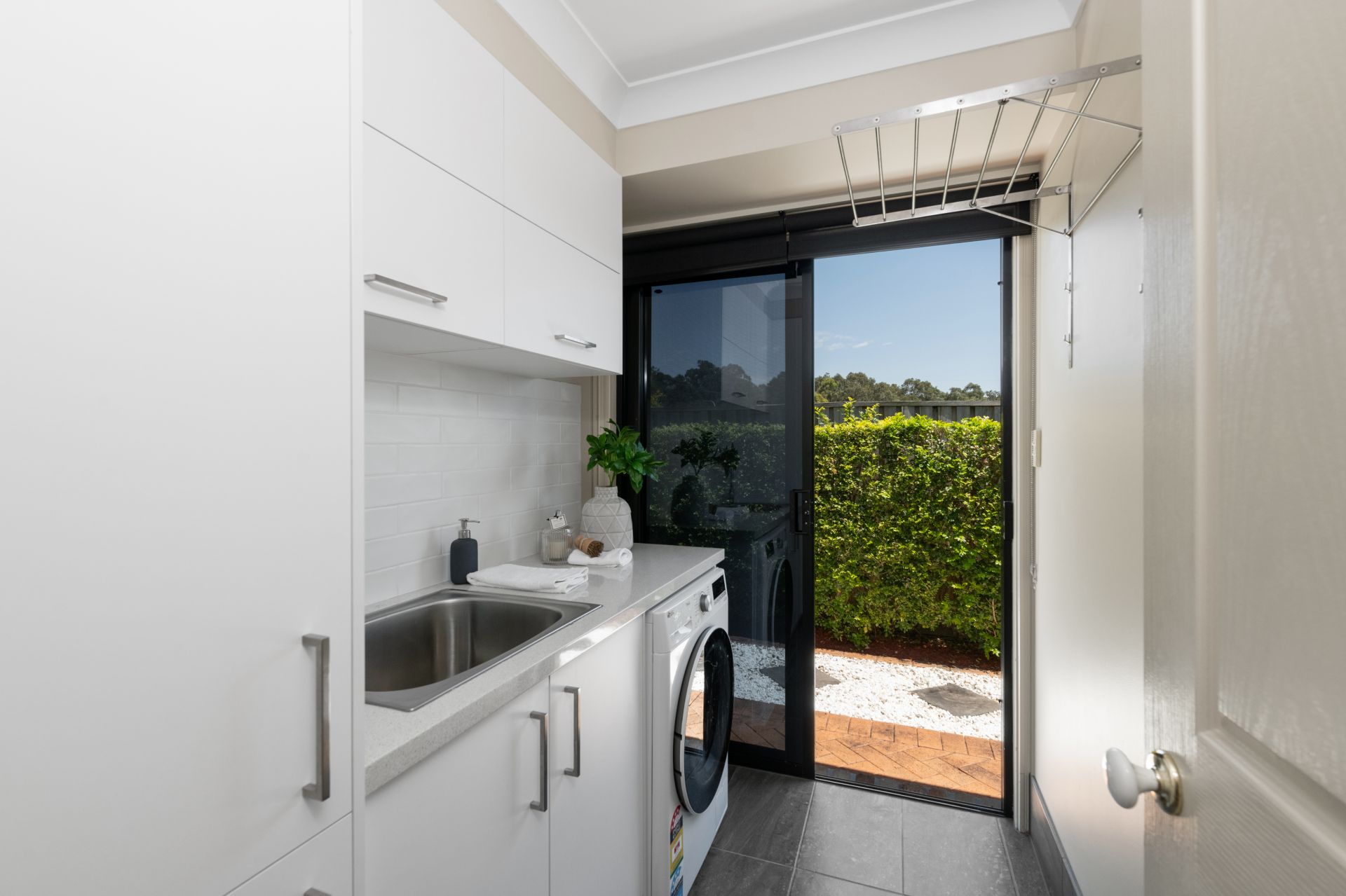 > The Laundry has also received a renovation and features tiled flooring, washtub, storage cupboards with soft-close cabinetry, Broom cupboard with internal power points to neatly store a cordless vacuum, internal hanging rack and external access to the back yard.