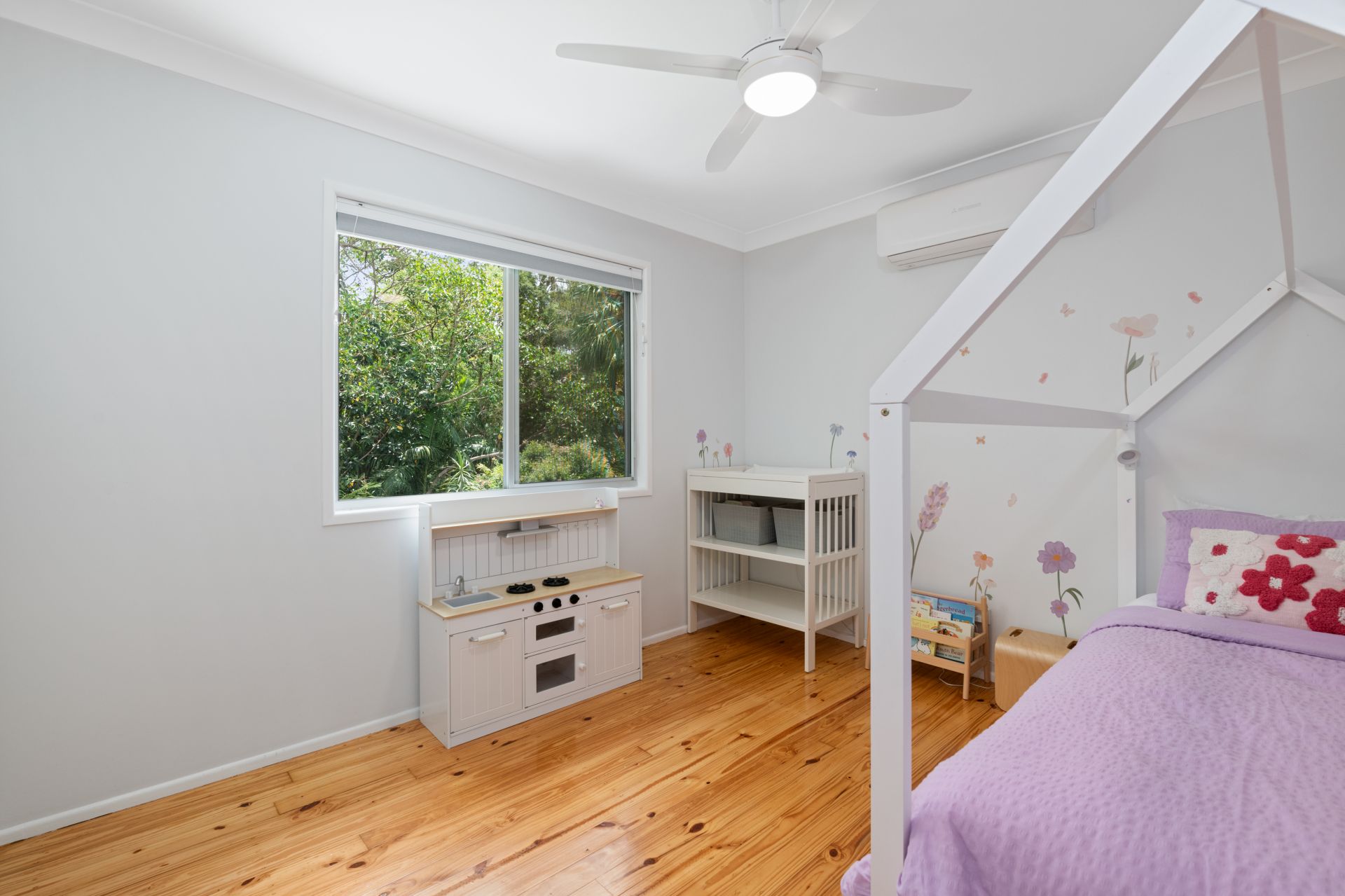 > Bedrooms two and three both feature polished timber flooring, new split system air-conditioning, ceiling fans, built-in-robes and Night & Day Honeycomb blinds.