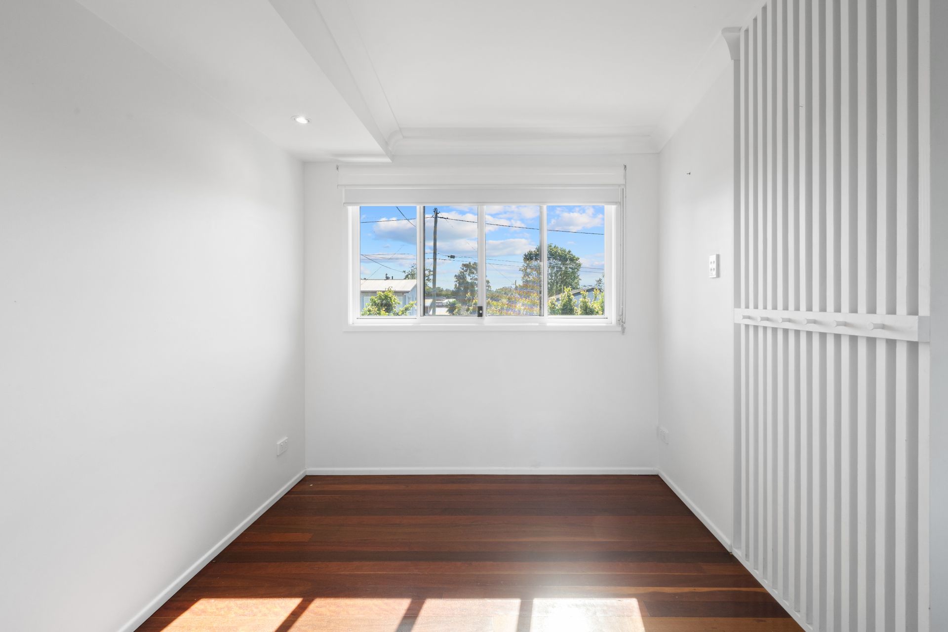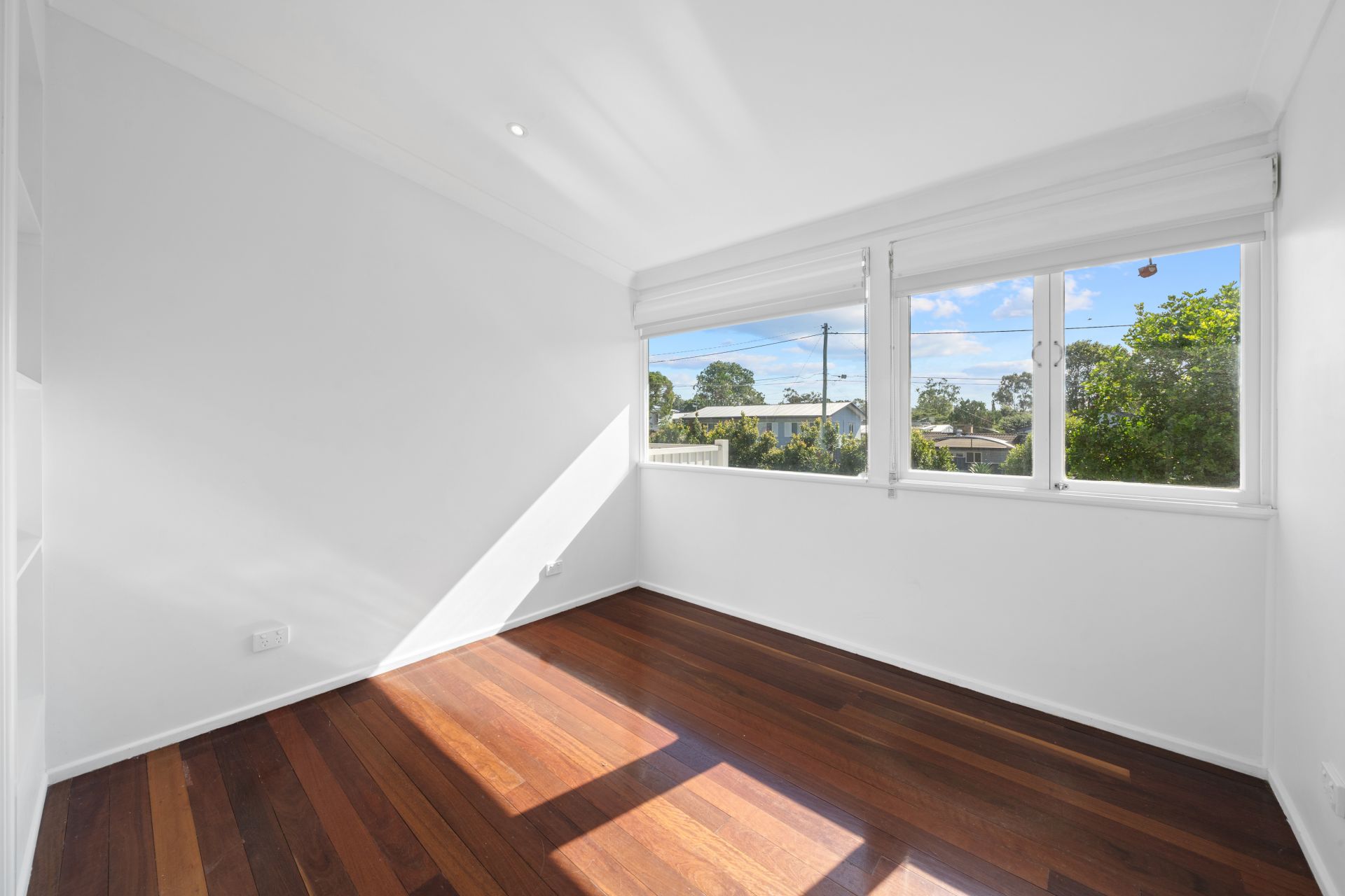 > The master bedroom is perfect for those who enjoy their own space, featuring pitched ceilings, rich timber flooring, a built-in robe, air conditioning, down lighting, and casement windows with layered roller blinds (solid and sheer).
