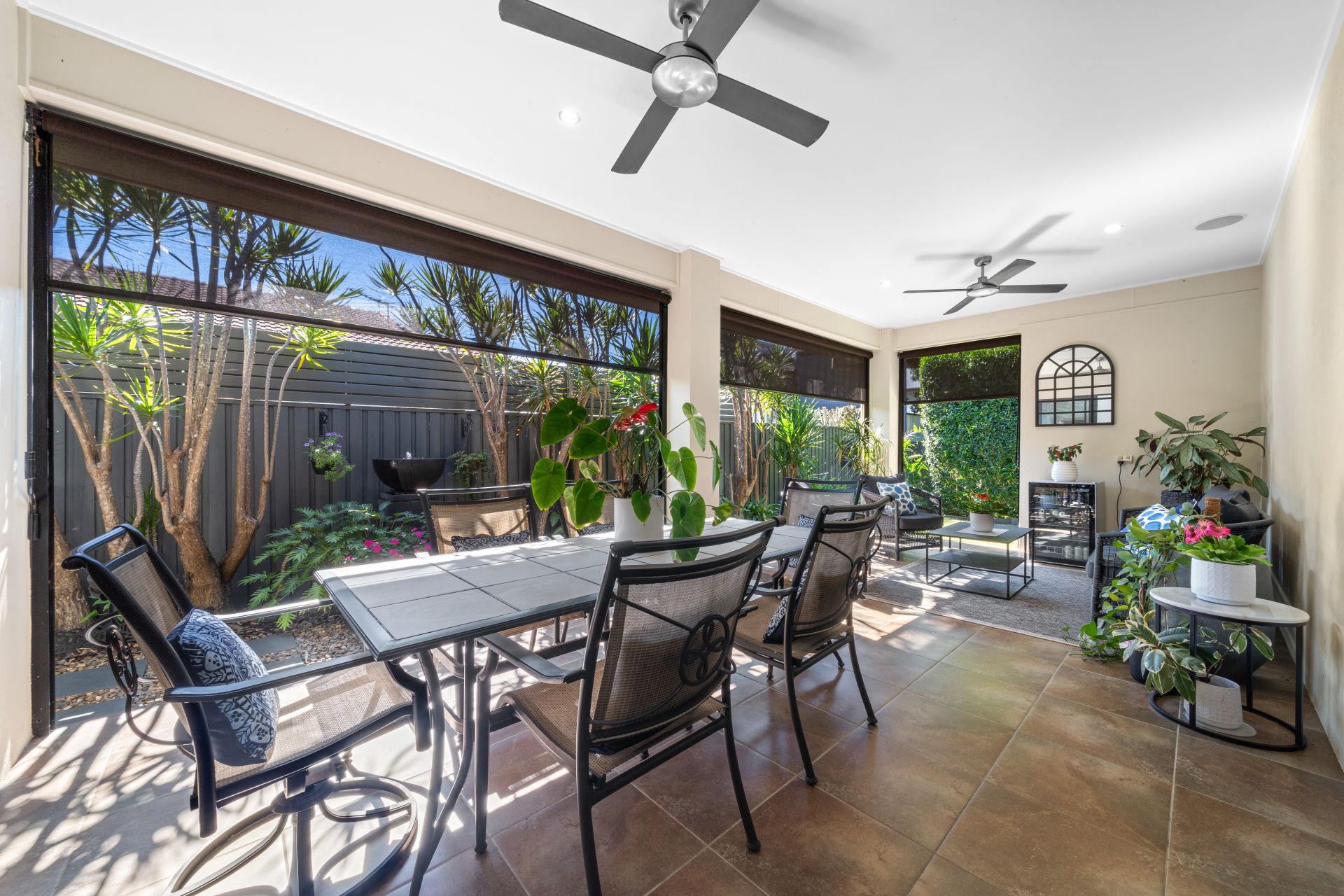 - Outdoor entertaining will be a breeze, thanks to the rear patio featuring tiled flooring, ceiling fans, down lighting, and roll down café blinds. With access to the low-maintenance yard and a fully enclosed fence line, the space encapsulates everything there is to love about the Queensland lifestyle.